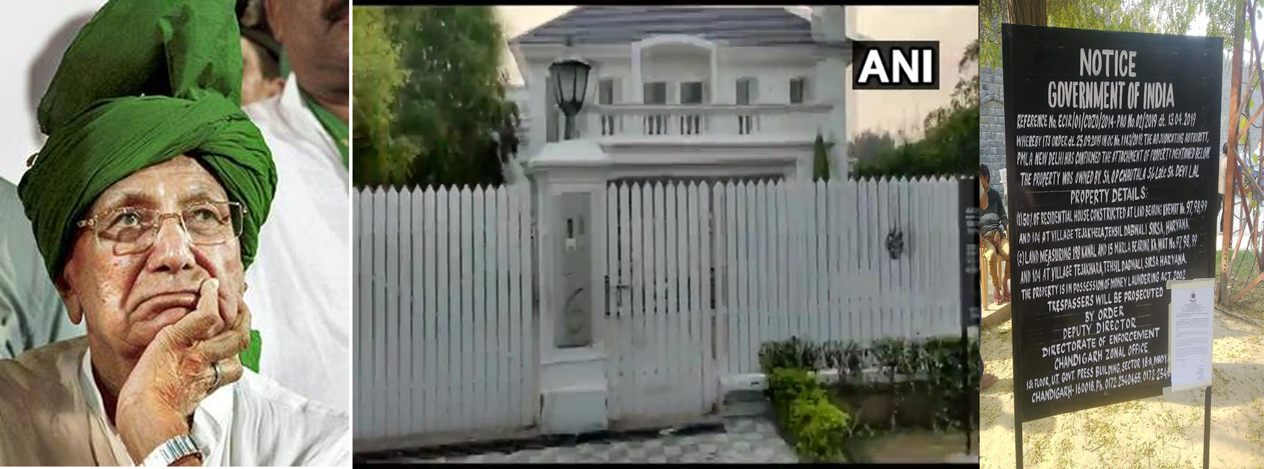 ਹਰਿਆਣਾ ਦੇ ਮੌਜੂਦਾ ਡਿਪਟੀ ਸੀਐਮ ਦੁਸ਼ਯੰਤ ਚੌਟਾਲਾ ਦੇ ਦਾਦਾ ਓਮ ਪ੍ਰਕਾਸ਼ ਚੌਟਾਲਾ ਜੋ ਕਿ ਪਿਛਲੇ ਲੰਮੇ ਸਮੇਂ ਤੋਂ ਜੇਲ੍ਹ ‘ਚ ਹਨ ਅੱਜ ਬੁੱਧਵਾਰ ਨੂੰ ਉਨ੍ਹਾਂ ਦੀਆਂ ਮੁਸ਼ਕਿਆਂ ਹੋਰ ਵਧਦੀਆਂ ਨਜ਼ਰ ਆ ਰਹੀਆਂ ਨੇ। ਦਰਅਸਲ ਈ ਡੀ ਨੇ ਵੱਡੀ ਕਾਰਵਾਈ ਕਰਦਿਆਂ ਹੋਇਆਂ ਚੌਟਾਲਾ ਦਾ ਤੇਜਾ ਖੇੜਾ ਫਾਰਮ ਹਾਊਸ ਤੇ ਪੰਚਕੂਲਾ ਦੀ ਕੋਠੀ ਵੀ ਅਟੈਚ ਕਰ ਲਈ ਹੈ। ਪੰਚਕੂਲਾ ‘ਚ ਈ ਡੀ ਨੇ ਮਨਸਾ ਦੇਵੀ ਕੰਪਲੈਕਸ ਸੈਕਟਰ 4- ‘ਚ ਬਣੀ ਕੋਠੀ ਨੰ-6(ਪੀ) ਨੂੰ ਅਟੈਚ ਕਰਕੇ ਕੋਠੀ ਦੇ ਬਾਹਰ ਚੇਤਾਵਨੀ ਬੋਰਡ ਲਾ ਦਿੱਤਾ ਹੈ। ਚੇਤਾਵਨੀ ਬੋਰਡ ਤੇ ਲਿਖਿਆ ਹੈ ਕਿ ਇਹ ਪ੍ਰਾਪਰਟੀ ਪ੍ਰਿਵੈਂਸ਼ਨ ਆਫ਼ ਮਨੀ ਲਾਂਡਰਿੰਗ ਐਕਟ 2002 ਦੀ ਧਾਰਾ 8 (4) ਦੇ ਤਹਿਤ ਈ ਡੀ ਦੇ ਕਬਜ਼ੇ ‘ਚ ਹੈ। ਸਵੇਰੇ 11 ਵਜੇ ਇਡੀ ਦੀ ਇਹ ਕਾਰਵਾਈ ਸ਼ੁਰੂ ਹੋਈ ਸੀ ਤੇ ਤਿੰਨ ਘੰਟੇ ਤੱਕ ਚੱਲਦੀ ਰਹੀ ਕਾਰਵਾਈ। ਸਿਰਸਾ ਦੇ ਤੇਜਾ ਖੇੜਾ ਦਾ ਫਾਰਮ ਹਾਊਸ ਜੋ 198 ਕਨਾਲ ਤੇ 15 ਮਰਲੇ ਦਾ ਹੈ ਇਸ ਫਾਰਮ ਹਾਊਸ ਦਾ 50% ਫ਼ੀਸਦੀ ਹਿੱਸਾ ਸੀਲ ਕਰ ਦਿੱਤਾ ਗਿਆ ਹੈ।