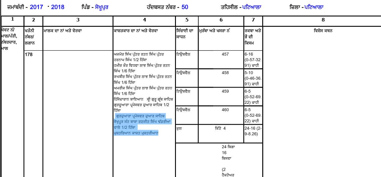 ਪ੍ਰੋ: ਸਰਚਾਂਦ ਸਿੰਘ ਨੇ ਅਗੇ ਕਿਹਾ ਕਿ ਜ਼ਮੀਨ ਦੀ ਫ਼ਰਦ ਵਿਚ ਕਿ ਸਾਫ਼ ਲਿਖਿਆ ਹੈ ਕਿ 2012 – 13 ਦੀ ਜਮ੍ਹਾਬੰਦੀ ਵਿਚ ਭਾਈ ਸਾਹਿਬ ਨੇ 12 ਵਿੱਘੇ 10 ਬਿਸਵਾ (ਤਕਰੀਬਨ 2 ਕਿੱਲੇ ) ਜ਼ਮੀਨ 2008 ਵਿਚ ਖਰੀਦੀ ਸੀ ਅਤੇ ਇੰਤਕਾਲ 2016 ਵਿਚ ਕਰਵਾਇਆਂ ਸੀ। ਸਾਲ 2017 – 18 ਦੀ ਜਮ੍ਹਾਬੰਦੀ ਵਿਚ ਹੀ 2008 ਦੀ ਖਰੀਦੀ ਜ਼ਮੀਨ ਦਾ ਇੰਤਕਾਲ 2016 ਵਿਚ ਕਰਵਾਇਆ ਹੈ ਅਤੇ ਹੁਣ ਜਨਵਰੀ 2020 ਤੱਕ ਵੀ ”ਸੰਤ ਬਾਬਾ ਰਣਜੀਤ ਸਿੰਘ ਢੱਡਰੀਆਂ ਵਾਲੇ’ ਦੇ ਨਾਮ 12 ਵਿੱਘੇ 10 ਬਿਸਵੇ (2 ਕਿੱਲੇ ) ਜ਼ਮੀਨ ਪਰਮੇਸ਼ਰ ਦੁਆਰ, ਸ਼ੇਖੂਪੁਰ ਵਿਚ ਹੈ।