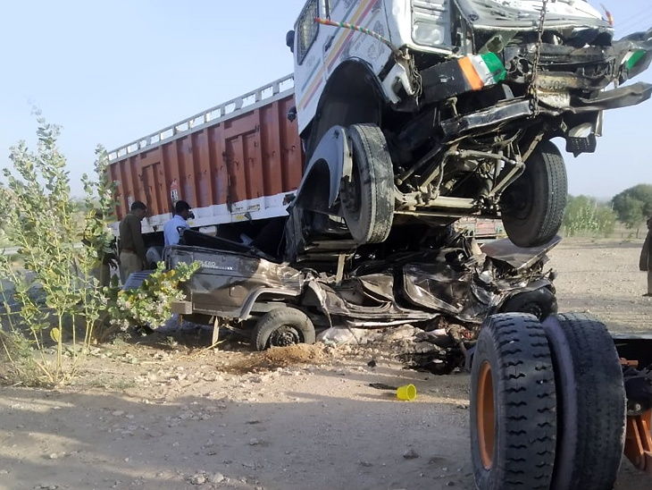 ਰਾਜਸਥਾਨ ਦੇ ਜੋਧਪੁਰ ਜਿਲ੍ਹੇ ਵਿੱਚ ਅੱਜ ਸਵੇਰੇ ਦਰਦਨਾਕ ਸੜਕ ਹਾਦਸਾ ਹੋਇਆ। ਟ੍ਰਾਲੇ ਅਤੇ ਬਲੈਰੋ ਦੀ ਟੱਕਰ ਵਿੱਚ ਇੱਕ ਹੀ ਪਰਿਵਾਰ ਦੇ 11 ਲੋਕਾਂ ਦੀ ਮੌਤ ਹੋ ਗਈ । 3 ਲੋਕ ਗੰਭੀਰ ਜਖ਼ਮੀ ਹੋ ਗਏ । ਇਹ ਪਰਿਵਾਰ ਨਵੀਂ ਵਿਆਹੀ ਜੋੜੀ ਨਾਲ ਬਾਲੋਤਰਾ ਤੋਂ ਰਾਮਦੇਵਰਾ ਦੇ ਦਰਸ਼ਨ ਦੇ ਲਈ ਜਾ ਰਹੀ ਸਨ । ਇਹਨਾ ਦੀ ਸ਼ਾਦੀ 27 ਫਰਵਰੀ ਨੂੰ ਹੀ ਹੋਈ ਸੀ । ਐਕਸੀਡੈਂਟ ਸੇ਼ਰਗੜ੍ਹ ਇਲਾਕੇ ‘ਚ ਹੋਈ । ਟੱਕਰ ਤੋਂ ਮਗਰੋਂ ਬਲੈਰੋ ਟ੍ਰਾਲੇ ਦੇ ਹੇਠਾਂ ਦੱਬ ਗਈ ।