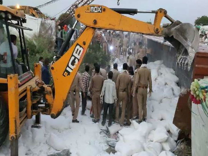 ਪੁਲੀਸ ਨੇ ਦੱਸਿਆ ਕਿ ਮਜਦੂਰ ਚੂਨੇ ਦੀਆਂ ਬੋਰੀਆਂ ਥੱਲੇ ਦੱਬ ਗਏ । ਕੁਝ ਦੀ ਟਰੱਕਾਂ ਦੀ ਫੇਟ ‘ਚ ਆਉਣ ਕਾਰਨ ਜਾਨ ਚਲੀ ਗਈ।