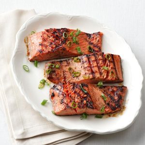 4 (5-oz) ਸੈਂਟਰ ਵਿੱਚੋ ਕਟੇ ਹੋਏ ਫਿਸ਼ ਦੇ 1 ਇੰਚ ਮੋਟੇ ਪੀਸ (salmon ਫਿਸ਼ recommended )