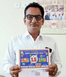 ਵਾਰ ਕੋਰੋਨਾ ਮਹਾਂਮਾਰੀ ਕਾਰਨ ਰੱਖੜੀ ਦਾ ਤਿਉਹਾਰ ਫਿੱਕਾ ਰਿਹਾ ਪਰ ਪੰਜਾਬ ਸਰਕਾਰ ਦੇ ਰਾਖੀ ਬੰਪਰ-2020 ਨੇ ਉਸ ਦਾ ਮੂੰਹ ਮਿੱਠਾ ਕਰਾ ਦਿੱਤਾ। ਇਥੇ ਪੰਜਾਬ ਲਾਟਰੀਜ਼ ਵਿਭਾਗ ਦੇ ਅਧਿਕਾਰੀਆਂ ਕੋਲ ਇਨਾਮੀ ਰਾਸ਼ੀ ਲਈ ਦਸਤਾਵੇਜ਼ ਜਮ੍ਹਾਂ ਕਰਵਾਉਣ ਬਾਅਦ ਧਰਮ ਪਾਲ ਨੇ ਦੱਸਿਆ ਕਿ ਪਿਛਲੇ 13 ਵਰ੍ਹਿਆਂ ਤੋਂ ਉਹ ਪੰਜਾਬ ਸਰਕਾਰ ਦੀਆਂ ਬੰਪਰ ਸਕੀਮਾਂ ਦੀਆਂ ਟਿਕਟਾਂ ਖਰੀਦ ਰਿਹਾ ਹੈ ਪਰ ਉਸ ਨੂੰ ਇਨਾਮ ਪਹਿਲੀ ਵਾਰ ਨਿਕਲਿਆ ਹੈ। ਦੱਸਣਯੋਗ ਹੈ ਕਿ ਪੰਜਾਬ ਰਾਜ ਰਾਖੀ ਬੰਪਰ-2020 ਦਾ ਡਰਾਅ 20 ਅਗਸਤ, 2020 ਨੂੰ ਕੱਢਿਆ ਗਿਆ ਸੀ। ਧਰਮ ਪਾਲ ਨੂੰ ਲਾਟਰੀਜ਼ ਵਿਭਾਗ ਵੱਲੋਂ 21 ਅਗਸਤ ਨੂੰ ਫੋਨ ਕਰਕੇ ਟਿਕਟ ਨੰਬਰ ਬੀ-315094 ਉਤੇ ਡੇਢ ਕਰੋੜ ਰੁਪਏ ਦਾ ਪਹਿਲਾ ਇਨਾਮ ਨਿਕਲਣ ਬਾਰੇ ਜਾਣਕਾਰੀ ਦਿੱਤੀ। ਧਰਮ ਪਾਲ ਨੇ ਦੱਸਿਆ ਕਿ ਉਸ ਦੇ ਇਕ ਧੀ ਅਤੇ ਦੋ ਪੁੱਤਰ ਹਨ। ਵੱਡਾ ਬੇਟਾ ਵਿਆਹਿਆ ਹੋਇਆ ਜਦੋਂ ਕਿ ਬੇਟੀ ਅਤੇ ਇਕ ਲੜਕਾ ਪੜ੍ਹ ਰਹੇ ਹਨ। ਉਸ ਨੇ ਦੱਸਿਆ ਕਿ ਇਸ ਰਾਸ਼ੀ ਨਾਲ ਉਹ ਆਪਣੇ ਬੱਚਿਆਂ ਨੂੰ ਉੱਚ ਤਾਲੀਮ ਦਿਵਾਉਣ ਤੋਂ ਇਲਾਵਾ ਆਪਣੇ ਕਾਰੋਬਾਰ ਦਾ ਵਿਸਥਾਰ ਕਰੇਗਾ। ਉਸ ਨੇ ਦੱਸਿਆ ਕਿ ਉਸ ਨੇ ਕਦੇ ਸੁਪਨੇ ਵਿੱਚ ਵੀ ਨਹੀਂ ਸੋਚਿਆ ਸੀ ਕਿ ਉਹ ਜ਼ਿੰਦਗੀ ਵਿੱਚ ਕਦੇ ਐਨੀਂ ਵੱਡੀ ਇਨਾਮੀ ਰਾਸ਼ੀ ਜਿੱਤੇਗਾ। ਇਹ ਸੁਪਨਾ ਸਾਕਾਰ ਹੋਣ ਵਾਂਗ ਹੈ। ਧਰਮ ਪਾਲ ਨੇ ਪੰਜਾਬ ਲਾਟਰੀਜ਼ ਵਿਭਾਗ ਦੇ ਅਧਿਕਾਰੀਆਂ ਦੇ ਸਹਿਯੋਗੀ ਵਤੀਰੇ ਦੀ ਸ਼ਲਾਘਾ ਕਰਦਿਆਂ ਡਰਾਅ ਕੱਢਣ ਦੇ ਪਾਰਦਰਸ਼ੀ ਢੰਗ ਉਤੇ ਤਸੱਲੀ ਵੀ ਪ੍ਰਗਟਾਈ। ਵਿਭਾਗ ਦੇ ਅਧਿਕਾਰੀਆਂ ਨੇ ਇਸ ਖੁਸ਼ਨਸੀਬ ਜੇਤੂ ਨੂੰ ਜਲਦ ਤੋਂ ਜਲਦ ਇਨਾਮੀ ਰਾਸ਼ੀ ਉਸ ਦੇ ਖਾਤੇ ਵਿੱਚ ਤਬਦੀਲ ਕਰਨ ਦਾ ਭਰੋਸਾ ਦਿੱਤਾ।