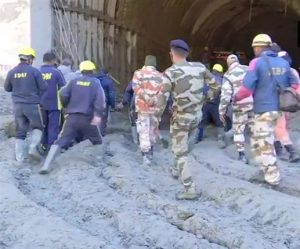 ਨਵੀਂ ਦਿੱਲੀ : ਉੱਤਰਾਖੰਡ ਦੇ ਚਮੋਲੀ ਜ਼ਿਲ੍ਹੇ ‘ਚ ਐਤਵਾਰ ਸਵੇਰੇ ਗਲੇਸ਼ੀਅਰ ਟੁੱਟਣ ਨਾਲ ਭਾਰੀ ਤਬਾਹੀ ਮਚ ਗਈ ਹੈ। ਪ੍ਰਭਾਵਿਤ ਇਲਾਕਿਆਂ ‘ਚ ਫ਼ੌਜ, ਆਈਟੀਬੀਪੀ, ਐੱਸਐੱਸਬੀ ਤੇ ਐੱਸਡੀਆਰਐੱਫ ਦੀਆਂ ਟੀਮਾਂ ਬਚਾਅ ਕੰਮ ‘ਚ ਜੁਟੀਆਂ ਹਨ। ਚਮੋਲੀ ਪੁਲਿਸ ਮੁਤਾਬਿਕ, ਟਨਲ ‘ਚ ਫਸੇ ਲੋਕਾਂ ਲਈ ਰਾਹਤ ਤੇ ਬਚਾਅ ਕੰਮ ਜਾਰੀ ਹੈ। ਜੇਸੀਬੀ ਦੀ ਮਦਦ ਨਾਲ ਟਨਲ ਦੇ ਅੰਦਰ ਪਹੁੰਚ ਕੇ ਰਸਤਾ ਖੋਲ੍ਹਣ ਦੀ ਕੋਸ਼ਿਸ਼ ਕੀਤੀ ਜਾ ਰਹੀ ਹੈ। ਹੁਣ ਤਕ ਕੁੱਲ 15 ਵਿਅਕਤੀਆਂ ਨੂੰ ਰੈਸਕਿਊ ਕੀਤਾ ਗਿਆ ਹੈ ਤੇ 14 ਲਾਸ਼ਾਂ ਨੂੰ ਵੱਖ-ਵੱਖ ਸਥਾਨਾਂ ਤੋਂ ਬਰਾਮਦ ਕੀਤਾ ਗਿਆ ਹੈ। ਉੱਥੇ ਅਜੇ ਟਨਲ ‘ਚ 30 ਲੋਕ ਫਸੇ ਹੋਏ ਹਨ। ਇਸ ਕੜੀ ‘ਚ ਐਤਵਾਰ ਦੁਪਹਿਰ ਨੂੰ ਹਵਾਈ ਸੈਨਾ ਦੇ ਸੀ-130 ਏਅਰਕ੍ਰਾਫਟ ਐੱਨਡੀਆਰਐੱਫ ਦੀ ਟੀਮ ਤੇ ਪੰਜ ਕਵਿੰਟਲ ਰਾਹਤ ਸਮਾਗਰੀ ਲੈ ਕੇ ਜੌਲੀਗ੍ਰਾਂਟ ਪਹੁੰਚੇ। ਸੋਮਵਾਰ ਸਵੇਰੇ ਪੌਣੇ ਸੱਤ ਵਜੇ ਹਵਾਈ ਸੈਨਾ ਦੇ ਜਵਾਨ ਰਾਹਤ ਸਮਾਗਰੀ ਤੇ ਮਾਕਰੇਸ ਨੂੰ ਲੈ ਕੇ ਪ੍ਰਭਾਵਿਤ ਸਥਾਨ ਵੱਲ ਰਵਾਨਾ ਹੋਏ। ਇੱਥੇ ਹਵਾਈ ਸੈਨਾ ਪ੍ਰਭਾਵਿਤ ਖੇਤਰਾਂ ‘ਚ ਹਵਾਈ ਸਰਵੇ ਵੀ ਕਰੇਗੀ। ਸੋਮਵਾਰ ਨੂੰ ਰਾਹਤ-ਬਚਾਅ ਨਾਲ ਲਾਪਤਾ ਵਿਅਕਤੀਆਂ ਦੇ ਤਲਾਸ਼ੀ ‘ਚ ਐੱਸਡੀਆਰਐੱਫ ਦੇ 70 ਜਵਾਨ, ਐੱਨਡੀਆਰਐੱਫ ਦੇ 129 ਜਵਾਨ, ਆਈਟੀਬੀਪੀ ਦੇ 425 ਜਵਾਨ, ਐੱਸਐੱਸਬੀ ਦੀ ਇਕ ਟੀਮ, ਫ਼ੌਜ ਦੇ 124 ਜਵਾਨ, ਫ਼ੌਜੀ ਦੀ ਦੋ ਮੈਡੀਕਲ ਟੀਮ ਤੇ ਸਿਹਤ ਵਿਭਾਗ ਦੀਆਂ ਦੀ ਟੀਮਾਂ ਲੱਗੀਆਂ ਹਨ।