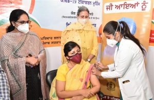 ਪੰਜਾਬ ਦੀ ਮੁੱਖ ਸਕੱਤਰ ਵਿਨੀ ਮਹਾਜਨ ਨੇ ਅੱਜ ਇਥੇ ਪੰਜਾਬ ਸਿਵਲ ਸਕੱਤਰੇਤ-1 ਵਿੱਚ ਕੋਵਿਡ-19 ਰੋਕੂ ਟੀਕਾ ਲਗਵਾਇਆ। ਮੁੱਖ ਮੰਤਰੀ ਕੈਪਟਨ ਅਮਰਿੰਦਰ ਸਿੰਘ ਦੇ ਹੁਕਮ ਉਪਰ ਇਥੇ ਸਰਕਾਰੀ ਮੁਲਾਜ਼ਮਾਂ ਲਈ ਟੀਕਾਕਰਨ ਵਾਸਤੇ ਵਿਸ਼ੇਸ਼ ਕੈਂਪ ਲਗਾਇਆ ਗਿਆ ਸੀ। ਸ੍ਰੀਮਤੀ ਮਹਾਜਨ ਨੇ ਕਿਹਾ ਹੈ ਕਰੋਨਾ ਨੂੰ ਮਾਤ ਦੇਣ ਲਈ ਲੋਕ ਟੀਕਾਕਰ ਕਰਵਾਉਣ।