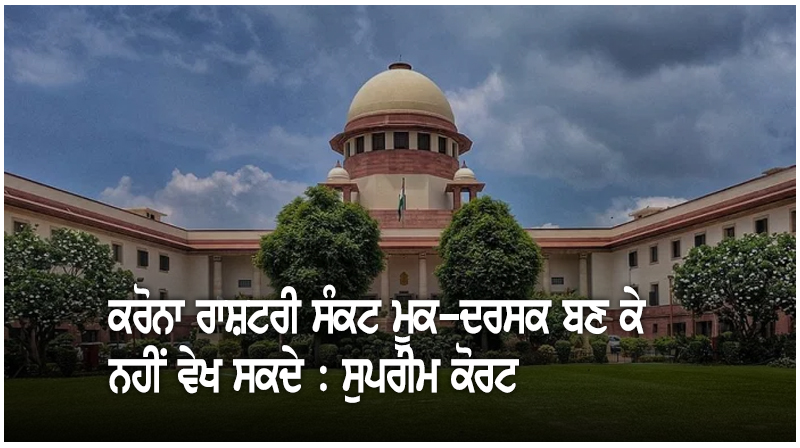 ਕੋਵਿਡ-19 ਮਾਮਲਿਆਂ ਵਿੱਚ ਵਾਧੇ ਨੂੰ ਰਾਸ਼ਟਰੀ ਸੰਕਟ ਕਰਾਰ ਦਿੰਦਿਆਂ ਸੁਪਰੀਮ ਕੋਰਟ ਨੇ ਅੱਜ ਕਿਹਾ ਕਿ ਉਹ ਅਜਿਹੀ ਸਥਿਤੀ ਵਿੱਚ ਮੂਕ ਦਰਸ਼ਕ ਬਣ ਕੇ ਨਹੀਂ ਰਹਿ ਸਕਦੇ। ਅਦਾਲਤ ਨੇ ਕਿਹਾ ਕਿ ਕੋਵਿਡ-19 ਦੇ ਪ੍ਰਬੰਧਨ ਲਈ ਕੌਮੀ ਨੀਤੀ ਤਿਆਰ ਕਰਨ ਲਈ ਉਸ ਵੱਲੋਂ ਕੀਤੀ ਜਾ ਰਹੀ ਕਾਰਵਾਈ ਦਾ ਅਰਥ ਹਾਈ ਕੋਰਟਾਂ ਦੇ ਮੁਕੱਦਮਿਆਂ ਨੂੰ ਦਬਾਉਣਾ ਨਹੀਂ ਹੈ। ਹਾਈ ਕੋਰਟ ਆਪਣੇ ਅਧਿਕਾਰ ਖੇਤਰ ਦੇ ਘੇਰੇ ਵਿੱਚ ਕੋਵਿਡ-19 ਦੀ ਸਥਿਤੀ ਦੀ ਨਿਗਰਾਨੀ ਕਰਨ ਲਈ ਬਿਹਤਰ ਸਥਿਤੀ ਵਿੱਚ ਹਨ। ਕੁੱਝ ਕੌਮੀ ਮਸਲਿਆਂ ਵਿੱਚ ਸੁਪਰੀਮ ਕੋਰਟ ਦੇ ਦਖਲ ਦੀ ਲੋੜ ਹੈ।ਜਸਟਿਸ ਡੀ ਵਾਈ ਚੰਦਰਚੂੜ, ਜਸਟਿਸ ਐਲ ਨਾਗੇਸ਼ਵਰ ਰਾਓ ਤੇ ਜਸਟਿਸ ਐਸ ਰਵਿੰਦਰ ਭੱਟ ਦੀ ਬੈਂਚ ਨੇ ਕਿਹਾ ਕਿ ਹਾਈ ਕੋਰਟ ਖੇਤਰੀ ਸੀਮਾ ਦੇ ਅੰਦਰ ਮਹਾਂਮਾਰੀ ਦੀ ਸਥਿਤੀ ਦੀ ਨਿਗਰਾਨੀ ਕਰਨ ਲਈ ਬਿਹਤਰ ਸਥਿਤੀ ਵਿੱਚ ਹੈ। ਬੈਂਚ ਨੇ ਕਿਹਾ ਕਿ ਸੁਪਰੀਮ ਕੋਰਟ ਦੇ ਦਖਲ ਦੀ ਲੋੜ ਕੁਝ ਰਾਸ਼ਟਰੀ ਮਸਲਿਆਂ ‘ਤੇ ਹੈ ਕਿਉਂਕਿ ਕੁਝ ਕੇਸ ਰਾਜਾਂ ਦਰਮਿਆਨ ਤਾਲਮੇਲ ਨਾਲ ਸਬੰਧਤ ਹੋ ਸਕਦੇ ਹਨ। ਬੈਂਚ ਨੇ ਕਿਹਾ ਕਿ ਅਸੀਂ ਪੂਰਕ ਭੂਮਿਕਾ ਨਿਭਾ ਰਹੇ ਹਾਂ, ਜੇ ਅਸੀਂ ਉੱਚ ਅਦਾਲਤਾਂ ਨੂੰ ਖੇਤਰੀ ਸੀਮਾਵਾਂ ਕਾਰਨ ਕੇਸਾਂ ਦੀ ਸੁਣਵਾਈ ਵਿੱਚ ਕੋਈ ਮੁਸ਼ਕਲ ਪੇਸ਼ ਆਵੇ ਤਾਂ ਅਸੀਂ ਸਹਾਇਤਾ ਕਰਾਂਗੇ। ਦੇਸ਼ ਵਿਚ ਕੋਵਿਡ-19 ਦੀ ਮੌਜੂਦਾ ਲਹਿਰ ਵਿਚਾਲੇ ਬੀਤੇ ਦਿਨੀਂ ਸੁਪਰੀਮ ਕੋਰਟ ਨੇ ਗੰਭੀਰਤਾ ਨਾਲ ਨੋਟਿਸ ਲੈਂਦਿਆ ਕਿਹਾ ਸੀ ਕਿ ਉਹ ਕੋਰੋਨਾ ਵਾਇਰਸ ਨਾਲ ਸੰਕਰਮਿਤ ਮਰੀਜ਼ਾਂ ਦੇ ਇਲਾਜ ਲਈ ਲੋੜੀਂਦੀ ਆਕਸੀਜਨ ਤੇ ਜ਼ਰੂਰੀ ਦਵਾਈਆਂ ਸਮੇਤ ਹੋਰਨਾਂ ਮੁੱਦਿਆਂ ਉਤੇ ‘ਰਾਸ਼ਟਰੀ ਯੋਜਨਾ’ ਚਾਹੁੰਦਾ ਹੈ। ਸੁਪਰੀਮ ਕੋਰਟ ਨੇ ਆਕਸੀਜਨ ਨੂੰ ਵਾਇਰਸ ਨਾਲ ਸੰਕਰਮਿਤ ਮਰੀਜ਼ਾਂ ਦੇ ਇਲਾਜ਼ ਦਾ ਇੱਕ ਜ਼ਰੂਰੀ ਹਿੱਸਾ ਦੱਸਿਆ ਹੈ ਤੇ ਕਿਹਾ ਹੈ ਕਿ ਅਜਿਹਾ ਲੱਗਦਾ ਹੈ ਕਿ ‘ਘਬਰਾਹਟ’ ਪੈਦਾ ਕਰ ਦਿੱਤੀ ਹੈ ਜਿਸ ਕਾਰਨ ਲੋਕਾਂ ਨੇ ਰਾਹਤ ਲਈ ਵੱਖ-ਵੱਖ ਉੱਚ ਅਦਾਲਤਾਂ ਵਿੱਚ ਪਟੀਸ਼ਨਾਂ ਦਾਖਲ ਕੀਤੀਆਂ ਹਨ।