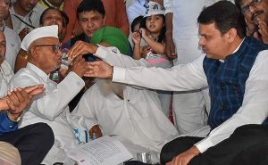 ਅੰਨਾ ਹਜ਼ਾਰੇ ਨੇ ਮਹਾਂਰਾਸ਼ਟਰ ਦੇ ਮੁੱਖ ਮੰਤਰੀ ਦੇਵੇਂਦਰ ਫੜਨਵੀਸ ਅਤੇ ਕੇਂਦਰੀ ਮੰਤਰੀ ਰਾਧਾ ਮੋਹਨ ਸਿੰਘ ਅਤੇ ਸੁਭਾਸ਼ ਭਾਮਰੇ ਨਾਲ ਇੱਕ ਲੰਮੀ ਮੀਟਿੰਗ ਤੋਂ ਬਾਅਦ ਆਪਣੀ ਭੁੱਖ ਹੜਤਾਲ ਵਾਪਿਸ ਲੈਣ ਦਾ ਐਲਾਨ ਕਰ ਦਿੱਤਾ ਹੈ। ਅੰਨਾ ਹਜ਼ਾਰੇ (81) ਨੇ ਲੋਕਪਾਲ ਦੀ ਮੰਗ ਮੰਨਵਾਉਣ ਲਈ 30 ਜਨਵਰੀ ਨੂੰ ਭੁੱਖ ਹੜਤਾਲ ਸ਼ੁਰੂ ਕੀਤੀ ਸੀ ਤੇ ਸੱਤ ਦਿਨ ਤੱਕ ਚੱਲੀ। ਮੁੱਖ ਮੰਤਰੀ ਨੇ ਕਿਹਾ ਕਿ ਸਰਕਾਰ ਨੇ ਉਨ੍ਹਾਂ ਦੀ ਮੰਗ ਮੰਨ ਲਈ ਹੈ। ਜਲਦੀ ਹੀ ਲੋਕਪਾਲ ਨਿਯੁਕਤ ਕਰਨ ਦੀ ਪ੍ਰਕਿਰਿਆ ਆਰੰਭੀ ਜਾਵੇਗੀ।
