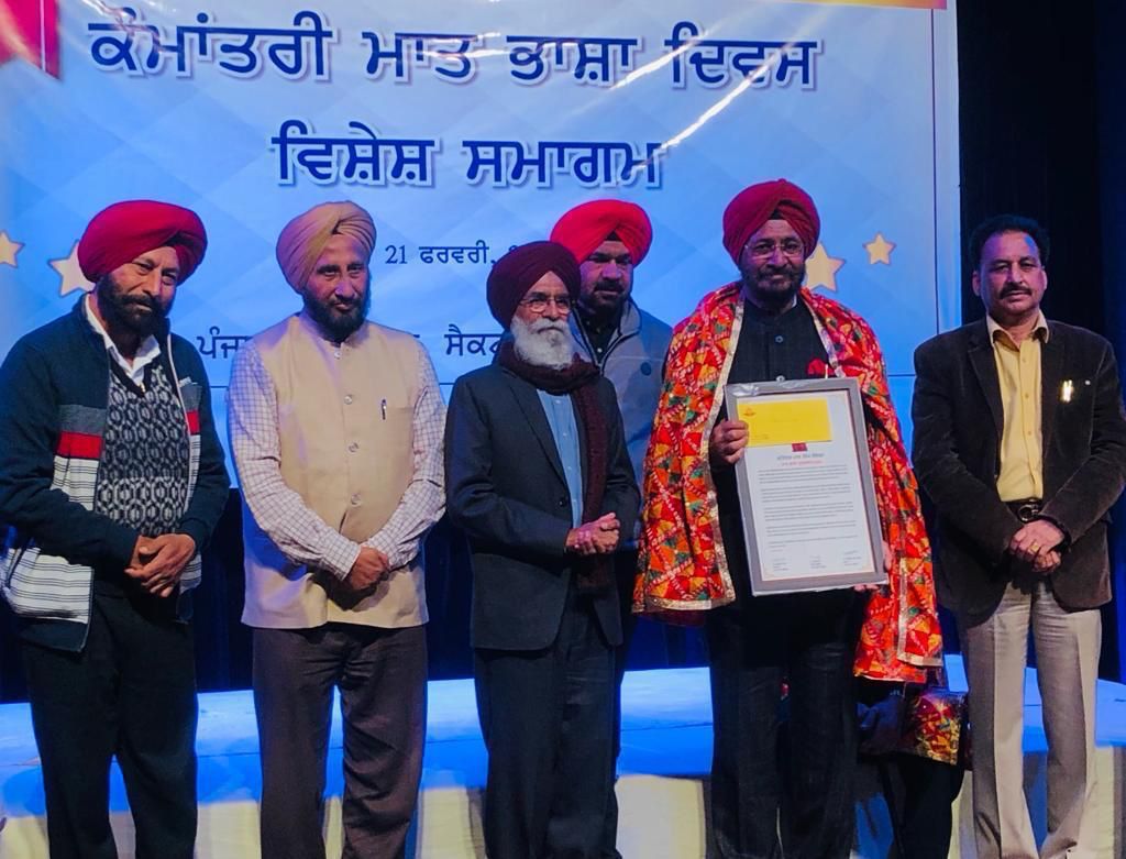 ਟੋਰਾਟੋ / ਚੰਡੀਗੜ੍ਹ – ਪੰਜਾਬ ਕਲਾ ਪਰਿਸ਼ਦ ਚੰਡੀਗੜ੍ਹ ਵਲੋਂ ਕੌਮਾਂਤਰੀ ਮਾਤ ਭਾਸ਼ਾ ਦਿਵਸ ਤੇ ਬੀਤੀ ਸ਼ਾਮ ਪੰਜਾਬ ਕਲਾ ਭਵਨ ਚੰਡੀਗੜ੍ਹ ਵਿਖੇ ਪੰਜਾਬੀ ਬੋਲੀ ਨੂੰ ਸਮਰਪਤ ਖੂਬਸੁਰਤ ਸਮਾਰੋਹ ਦਾ ਆਯੋਜਿਨ ਕੀਤਾ ਗਿਆ। ਇਸ ਸਮੇਂ ਕੈਨੇਡਾ ਦੇ ਟਾਰਾਂਟੋ ਸ਼ਹਿਰ ਦੇ ਪਾਪੂਲਰ ਰੇਡੀਓ ਪੰਜਾਬੀ ਲਹਿਰਾਂ ਦੇ ਬਾਨੀ, ਸ਼੍ਰੋਮਣੀ ਕਵੀਸ਼ਰ ਸਰਦਾਰ ਰਣਜੀਤ ਸਿੰਘ ਸਿੱਧਵਾਂ ਦੇ ਸਪੁੱਤਰ ਸਰਦਾਰ ਸਤਿੰਦਰਪਾਲ ਸਿੰਘ ਸਿੱਧਵਾਂ ਦਾ ਖ਼ੂਬਸੂਰਤ ਫੁਲਕਾਰੀ ਇਕਵੰਜਾ ਹਜ਼ਾਰ ਰੁਪਏ ਅਤੇ ਪ੍ਰਮਾਣ ਪੱਤਰ ਦੇ ਕੇ ਸਨਮਾਨ ਕੀਤਾ ਗਿਆ। ਸਨਮਾਨ ਦੇਣ ਦੀ ਰਸ਼ਮ ਪਦਮ ਸ੍ਰੀ ਸੁਰਜੀਤ ਪਾਤਰ ਚੇਅਰਮੈਨ ਪੰਜਾਬ ਕਲਾ ਪਰਿਸ਼ਦ, ਡਾ ਲਖਵਿੰਦਰ ਜੌਹਲ ਪ੍ਰਧਾਨ ਪੰਜਾਬੀ ਸਾਹਿਤ ਅਕਾਦਮੀ ਲੁਧਿਆਣਾ, ਡਾ ਯੋਗਰਾਜ ਅਤੇ ਡਾ ਸਰਬਜੀਤ ਕੌਰ ਸੋਹਲ ਨਿਭਾਈ ਗਈ ! ਸ੍ਰ ਸਤਿੰਦਰਪਾਲ ਸਿੰਘ ਸਿੱਧਵਾਂ ਨੂੰ ਇਸ ਵੱਡਮੁਲੇ ਸਨਮਾਨ ਮਿਲਣ ਤੇ ਸੱਭਿਆਚਾਰਕ ਸੱਥ ਪੰਜਾਬ ਦੇ ਚੇਅਰਮੈਨ ਜਸਮੇਰ ਸਿੰਘ ਢੱਟ, ਸਰਪ੍ਰਸਤ ਗੁਰਭਜਨ ਗਿੱਲ, ਸਕੱਤਰ ਜਨਰਲ ਪ੍ਰੋ ਨਿਰਮਲ ਜੌੜਾ, ਜਗਜੀਤ ਸਿੰਘ ਲੋਹਟਬੱਦੀ, ਵਤਨੋ ਦੂਰ ਟੀ ਵੀ ਦੇ ਕਰਤਾ ਧਰਤਾ ਸੁੱਖੀ ਨਿੱਜਰ, ਗੁਰਦੇਵ ਸਿੰਘ, ਪ੍ਰੀਤਮ ਸਿੰਘ ਰੁਪਾਲ, ਰਬਿੰਦਰ ਰੰਗੂਵਾਲ ਨੇ ਮੁਬਾਰਕਬਾਦ ਦਿੰਦਿਆਂ ਆਸ ਪ੍ਰਗਟ ਕੀਤੀ ਹੈ ਕੇ ਸਰਦਾਰ ਸਤਿੰਦਰ ਪਾਲ ਸਿੱਧਵਾਂ ਕੈਨੇਡਾ ਵਿਚ ਪੰਜਾਬੀ ਬੋਲੀ ਦੇ ਪ੍ਰਚਾਰ ਅਤੇ ਪਾਸਾਰ ਲਈ ਕੋਈ ਕਸਰ ਬਾਕੀ ਨਹੀਂ ਛੱਡਣਗੇ ! ਇਸ ਸੰਬੰਧੀ ਸੱਥ ਦੀ ਹੋਈ ਮੀਟਿੰਗ ਵਿਚ ਪੰਜਾਬ ਕਲਾ ਪਰਿਸ਼ਦ ਦੇ ਉਪਰਾਲਿਆਂ ਦੀ ਸਲਾਘਾ ਕਰਦਿਆਂ ਸਮੁੱਚੇ ਪੰਜਾਬੀ ਜਗਤ ਨੂੰ ਕੌਮਾਂਤਰੀ ਮਾਤ ਭਾਸ਼ਾ ਦਿਵਸ ਤੇ ਵਧਾਈ ਦਿੰਦਿਆਂ ਪੰਜਾਬੀ ਬੋਲੀ ਅਪਨਾਉਣ ਦੀ ਅਪੀਲ ਵੀ ਕੀਤੀ ਗਈ ।ਕਨੇਡਾ ਵਿੱਚ ਵੀ ਏਕਮ ਟੀਵੀ ਅਮਰਜੀਤ ਸਿੰਘ ਰਾਏ , ਹਮਦਰਦ ਦੇ ਅਮਰ ਸਿੰਘ ਭੁੱਲਰ , ਗਾਉਂਦਾ ਪੰਜਾਬ ਦੇ ਜੁਗਿੰਦਰ ਬਾਸੀ , ਪੰਜਾਬੀ ਵਿਰਸਾ ਦੇ ਸਿੰਘ ਹਰਜੀਤ ,ਪੰਜਾਬੀ ਪੋਸਟ ਦੇ ਜਗਦੀਸ ਗਰੇਵਾਲ ,ਪੰਜਾਬ ਸਟਾਰ ਦੇ ਸਿਮਰਤ ਗਰੇਵਾਲ , ਆਰਟਿਸਟ ਬਲਜਿੰਦਰ ਸੇਖਾ ,ਮਾਸਟਰ ਹਰਚਰਨ ਸਿੰਘ ਰਾਮੂਵਾਲਾ ਨੇ ਸ਼ਤਿੱਦਰਪਾਲ ਸਿੱਧਵਾਂ ਨੂੰ ਵਧਾਈ ਭੇਜੀ ਹੈ
