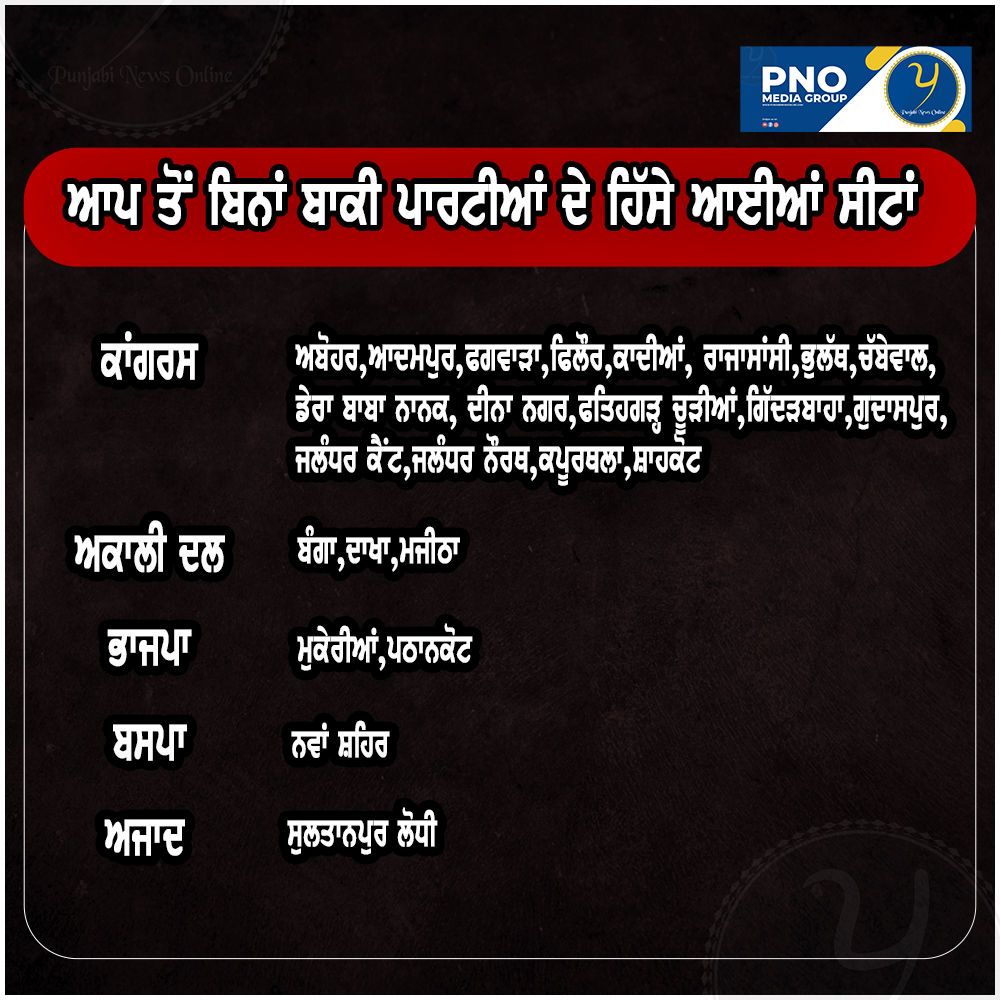 ਮੁੱਖ ਖ਼ਬਰਾਂਪੰਜਾਬ ਆਪ ਤੋਂ ਬਿਨਾਂ ਬਾਕੀ ਪਾਰਟੀਆਂ ਦੇ ਹਿੱਸੇ ਕਿਹੜੀਆਂ-ਕਿਹੜੀਆਂ ਸੀਟਾਂ ਆਈਆਂ ? March 10, 2022 Share Facebook Twitter Pinterest WhatsApp Linkedin Email Print Telegram Viber Total Views: 230 , Real Estate