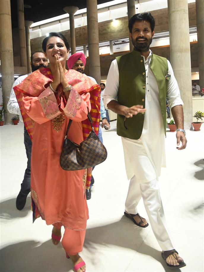 ਪੰਜਾਬ ਚ ਆਮ ਆਦਮੀ ਦੀ ਪਾਰਟੀ ਦੀ ਸਰਕਾਰ ਆਉਣ ਤੋਂ ਬਾਅਦ ਪਲੇਠੇ ਵਿਧਾਨ ਸਭਾ ਇਜਲਾਸ ਦੇ ਪਹਿਲੇ ਦਿਨ ਪ੍ਰੋਟੇਮ ਸਪੀਕਰ ਇੰਦਰਬੀਰ ਨਿੱਜਰ , ਜੋ ਅੰਮ੍ਰਿਤਸਰ ਦੱਖਣ ਤੋਂ ਵਿਧਾਇਕ ਨੇ 16ਵੀਂ ਵਿਧਾਨਸਭਾ ਦੇ ਨਵੇਂ ਚੁਣ ਕੇ ਆਏ ਵਿਧਾਇਕਾਂ ਨੂੰ ਸੁਹੰ ਚੁਕਾਈ। ਜਿਸ ਦੌਰਾਨ ਪੰਜਾਬ ਕਾਂਗਰਸ ਦੇ ਸਾਬਕਾ ਪ੍ਰਧਾਨ ਸੁਨੀਲ ਜਾਖੜ ਦੇ ਭਜੀਜੇ ਸੰਦੀਪ ਜਾਖੜ , ਜੋ ਅਬੋਹਰ ਤੋਂ ਵਿਧਾਇਕ ਚੁਣੇ ਗਏ ਹਨ , ਨੇ ਹਿੰਦੀ ਚ ਤੇ ਮਲੇਰਕੋਟਲਾ ਤੋਂ ਆਮ ਆਦਮੀ ਪਾਰਟੀ ਦੇ ਨਵੇਂ ਚੁਣ ਕੇ ਆਏ ਵਿਧਾਇਕ ਮੁਹੰਮਦ ਜਮੀਲ ਉਲ ਰਹਿਮਾਨ ਨੇ ਉਰਦੂ ਚ ਸੁਹੰ ਚੁੱਕੀ। ਕਾਂਗਰਸ ਦੇ ਵਿਧਾਇਕ ਰਾਜਾ ਵੜਿੰਗ ਨੇ ਮਨਪ੍ਰੀਤ ਬਾਦਲ ਨੂੰ ਹਰਾਉਣ ਵਾਲੇ ਆਪ ਦੇ ਵਿਧਾਇਕ ਜਗਰੂਪ ਸਿੰਘ ਗਿੱਲ ਦੇ ਪੈਂਰੀ ਹੱਥ ਲਾ ਕੇ ਉਨ੍ਹਾਂ ਨੂੰ ਮੁਬਾਰਕਾਂ ਦਿਤੀਆਂ। ਲੁਧਿਆਣਾ ਦੇ ਆਤਮ ਨਗਰ ਤੋਂ ਲੋਕ ਇਨਸਾਫ ਪਾਰਟੀ ਦੇ ਵਿਧਾਇਕ ਰਹਿ ਚੁੱਕੇ ਸਿਮਰਜੀਤ ਸਿੰਘ ਬੈਂਸ ਨੂੰ ਹਰਾ ਕੇ ਵਿਧਾਨ ਸਭਾ ਚ ਪਹਿਲੀ ਵਾਰ ਪਹੁੰਚੇ ਆਮ ਆਦਮੀ ਪਾਰਟੀ ਦੇ ਵਿਧਾਇਕ ਕੁਲਵੰਤ ਸਿੰਘ ਸਿੱਧੂ ਸੁਹੰ ਚੁੱਕਣ ਸਮੇਂ ਘਬਰਾ ਗਏ ਤੇ ਸਪੀਕਰ ਨੇ ਸਤਰਾਂ ਆਪ ਬੋਲ ਬੋਲ ਕੇ ਉਨ੍ਹਾਂ ਨੂੰ ਸੁੰਹ ਚੁਕਾਈ। ਇਸ ਦੇ ਨਾਲ ਹੀ ਸਾਬਕਾ ਮੁੱਖਮੰਤਰੀ ਚਰਨਜੀਤ ਸਿੰਘ ਚੰਨੀ ਨੂੰ ਹਰਾ ਕੇ ਆਉਣ ਵਾਲੇ ਭਦੌੜ ਤੋਂ ਵਿਧਾਇਕ ਲਾਭ ਸਿੰਘ ਉੱਗੋਕੇ ਜਦੋਂ ਆਪਣੀ ਸੀਟ ਤੋਂ ਉੱਠ ਕੇ ਸਪੀਕਰ ਤੱਕ ਪਹੁੰਚ ਰਹੇ ਸਨ ਤੇ ਸਾਰੇ ‘ਆਪ’ ਵਿਧਾਇਕਾਂ ਨੇ ਤਾੜੀਆਂ ਨਾਲ ਉਨ੍ਹਾਂ ਦੀ ਹੌਂਸਲਾ ਅਫ਼ਜ਼ਾਈ ਕੀਤੀ। ਕਾਂਗਰਸ ਦੇ ਗਿੱਦੜਬਾਹਾ ਤੋਂ ਵਿਧਾਇਕ ਰਾਜਾ ਵੜਿੰਗ ਤੇ ਆਮ ਆਦਮੀ ਪਾਰਟੀ ਦੇ ਫਰੀਦਕੋਟ ਤੋਂ ਵਿਧਾਇਕ ਕੁਲਤਾਰ ਸੰਧਵਾ ਨੇ ਸਪੀਕਰ ਦੇ ਕੋਲ ਪਹੁੰਚ ਤੋਂ ਪਹਿਲਾਂ ਪੌੜੀਆਂ ਨੂੰ ਮੱਥਾ ਵੀ ਟੇਕਿਆ। ਵਿਰੋਧੀ ਧਿਰ ਵਾਲੇ ਪਾਸੇ ਕਾਂਗਰਸ ਤੋਂ ਸੁਖਜਿੰਦਰ ਰੰਧਾਵਾ , ਪ੍ਰਤਾਪ ਬਾਜਵਾ , ਰਾਜਾ ਵੜਿੰਗ ਤੇ ਸੁਖਪਾਲ ਖਹਿਰਾ ਵਖਾਈ ਦਿੱਤੇ।