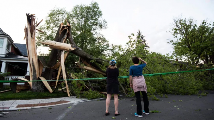 ਤੇਜ ਤੂਫਾਨ ਨੇ ਦੱਖਣੀ ਓਂਟਾਰੀਓ ਨੂੰ ਆਪਣੀ ਲਪੇਟ ਵਿੱਚ ਲਿਆ ਜਿਸ ਕਾਰਨ ਲਗਪਗ ਪੰਜ ਵਿਅਕਤੀਆਂ ਦੀ ਮੌਤ ਹੋ ਗਈ। ਇਸ ਤੋਂ ਇਲਾਵਾ ਸਾਢੇ ਤਿੰਨ ਲੱਖ ਘਰਾਂ ਦੀ ਬਿਜਲੀ ਬੰਦ ਹੋ ਗਈ। ਤੂਫਾਨ ਕਾਰਨ ਸੰਚਾਰ ਸੇਵਾਵਾਂ ਵੀ ਪ੍ਰਭਾਵਿਤ ਹੋਈਆਂ। ਇਸੇ ਦੌਰਾਨ ਹਜ਼ਾਰਾਂ ਦਰੱਖਤ ਡਿੱਗਣ ਕਾਰਨ ਸੜਕੀ ਆਵਾਜਾਈ ਵੀ ਪ੍ਰਭਾਵਿਤ ਹੋਈ। ਲਗਪਗ 150 ਕਿਲੋਮੀਟਰ ਦੀ ਰਫ਼ਤਾਰ ਨਾਲ ਚੱਲੀਆਂ ਤੇਜ਼ ਹਵਾਵਾਂ ਕਾਰਨ ਕਈ ਵਾਹਨ ਸੜਕਾਂ ਤੋਂ ਥੱਲੇ ਲਹਿ ਗਏ ਅਤੇ ਇੱਕ-ਦੂਜੇ ਨਾਲ ਟਕਰਾ ਗਏ। ਇਸ ਦੌਰਾਨ ਟੋਰਾਂਟੋ ਹਵਾਈ ਅੱਡੇ ’ਤੇ ਜਹਾਜ਼ਾਂ ਦੀ ਆਵਾਜਾਈ ਅੱਧੇ ਘੰਟੇ ਲਈ ਬੰਦ ਕਰਨੀ ਪਈ। ਇਸ ਤੋਂ ਇਲਾਵਾ ਛੇ ਹਵਾਈ ਜਹਾਜ਼ਾਂ ਨੂੰ ਦੂਜੇ ਹਵਾਈ ਅੱਡਿਆਂ ਵੱਲ ਭੇਜਣਾ ਪਿਆ। ਪਹਿਲੀ ਮੌਤ ਦੀ ਪੁਸ਼ਟੀ ਬਰੈਂਪਟਨ ਤੋਂ ਹੋਈ, ਜਿੱਥੇ ਇਕ ਬਿਰਧ ਮਹਿਲਾ ’ਤੇ ਦਰੱਖਤ ਡਿੱਗਣ ਕਾਰਨ ਉਹ ਜ਼ਖ਼ਮੀ ਹੋ ਗਈ ਅਤੇ ਹਸਪਤਾਲ ਜਾਂਦੇ ਸਮੇਂ ਰਾਹ ਵਿੱਚ ਹੀ ਦਮ ਤੋੜ ਗਈ। ਇਸ ਤੋਂ ਇਲਾਵਾ ਇੱਕ ਕੈਂਪਿੰਗ ਸਥਾਨ ’ਤੇ ਇੱਕ ਵੱਡਾ ਟਾਹਣ ਟਰਾਲੀ ’ਤੇ ਡਿੱਗਣ ਕਾਰਨ ਇਕ ਪੁਰਸ਼ ਸੈਲਾਨੀ ਦੀ ਮੌਤ ਹੋ ਗਈ। ਇਸੇ ਤਰ੍ਹਾਂ ਓਟਾਵਾ ਵਿੱਚ ਸੜਕ ’ਤੇ ਜਾ ਰਹੀ ਕਾਰ ’ਤੇ ਬਿਜਲੀ ਦਾ ਖੰਭਾ ਡਿੱਗਣ ਕਾਰਨ ਇਕ ਵਿਅਕਤੀ ਦੀ ਮੌਤ ਹੋ ਗਈ ਅਤੇ ਦੋ ਸਵਾਰ ਜ਼ਖ਼ਮੀ ਹੋ ਗਏ। ਪੁਲੀਸ ਨੇ ਸ਼ਾਮ ਵੇਲੇ ਤੂਫਾਨ ਕਾਰਨ ਇਕ ਹੋਰ 40 ਸਾਲਾ ਵਿਅਕਤੀ ਦੀ ਮੌਤ ਹੋਣ ਦੀ ਪੁਸ਼ਟੀ ਕੀਤੀ ਹੈ। ਸਰਕਾਰੀ ਸੂਤਰਾਂ ਅਨੁਸਾਰ ਮੌਤਾਂ ਦੀ ਗਿਣਤੀ ਵਧ ਸਕਦੀ ਹੈ। ਪੁਲੀਸ ਅਨੁਸਾਰ 11 ਹੋਰ ਵਿਅਕਤੀਆਂ ਦੇ ਜ਼ਖ਼ਮੀ ਹੋਣ ਦੀ ਸੂਚਨਾ ਹੈ।