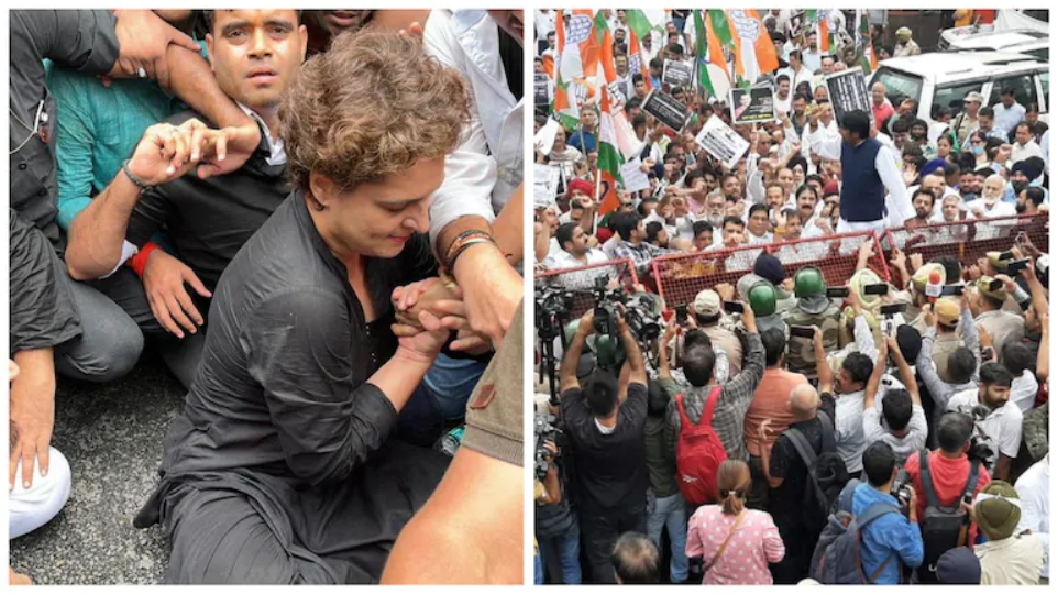 ਕਾਂਗਰਸੀ ਆਗੂ ਰਾਹੁਲ ਗਾਂਧੀ, ਪ੍ਰਿਯੰਕਾ ਗਾਂਧੀ ਵਾਡਰਾ, ਮਲਿਕਾਰੁਜਨ ਖੜਗੇ, ਪੀ। ਚਿਦੰਬਰਮ ਅਤੇ ਜੈਰਾਮ ਰਮੇਸ਼ ਸਮੇਤ ਕਾਂਗਰਸ ਦੇ ਸੰਸਦ ਮੈਂਬਰਾਂ ਨੂੰ ਦਿੱਲੀ ਵਿਜੈ ਚੌਕ ਵਿੱਚ ਉਸ ਸਮੇਂ ਹਿਰਾਸਤ ਵਿੱਚ ਲੈ ਲਿਆ ਗਿਆ, ਜਦੋਂ ਉਹ ਮਹਿੰਗਾਈ ਤੇ ਬੇਰੁਜ਼ਗਾਰੀ ਖ਼ਿਲਾਫ਼ ਰਾਸ਼ਟਰਪਤੀ ਭਵਨ ਵੱਲ ਰੋਸ ਮਾਰਚ ਕਰ ਰਹੇ ਸਨ। ਏਆਈਸੀਸੀ ਹੈੱਡਕੁਆਰਟਰ ਤੋਂ ਪ੍ਰਧਾਨ ਮੰਤਰੀ ਦੇ ਘਰ ਵੱਲ ਮਾਰਚ ਕਰ ਰਹੇ ਕਾਂਗਰਸੀ ਆਗੂਆਂ ਦੇ ਵੱਖਰੇ ਗਰੁੱਪ ਨੂੰ ਵੀ ਹਿਰਾਸਤ ਵਿੱਚ ਲਿਆ ਗਿਆ। ਇਨ੍ਹਾਂ ਨੇ ਕਾਲੇ ਕੱਪੜੇ ਪਹਿਨੇ ਹੋਏ ਸਨ। ਪੁਲੀਸ ਨੇ ਕਾਂਗਰਸੀ ਆਗੂਆਂ ਨੂੰ ਵਿਜੈ ਚੌਕ ਵਿੱਚ ਹੀ ਰੋਕ ਲਿਆ।