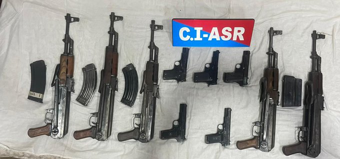 ਪੰਜਾਬ ਦੇ ਡੀਜੀਪੀ ਗੌਰਵ ਯਾਦਵ ਨੇ ਅੱਜ ਟਵੀਟ ਵਿੱਚ ਦੱਸਿਆ ਕਿ ਪੰਜਾਬ ਪੁਲੀਸ ਨੇ ਬੀਐੱਸਐੱਫ ਨਾਲ ਸਾਂਝੇ ਅਪਰੇਸ਼ਨ ਦੌਰਾਨ ਫਿਰੋਜ਼ਪੁਰ ਵਿਚੋਂ ਪੰਜ ਏਕੇ-47 ਰਾਈਫਲਾਂ, ਪੰਜ ਪਿਸਤੌਲ ਅਤੇ ਨੌਂ ਮੈਗਜ਼ੀਨ ਜ਼ਬਤ ਕੀਤੇ ਹਨ।