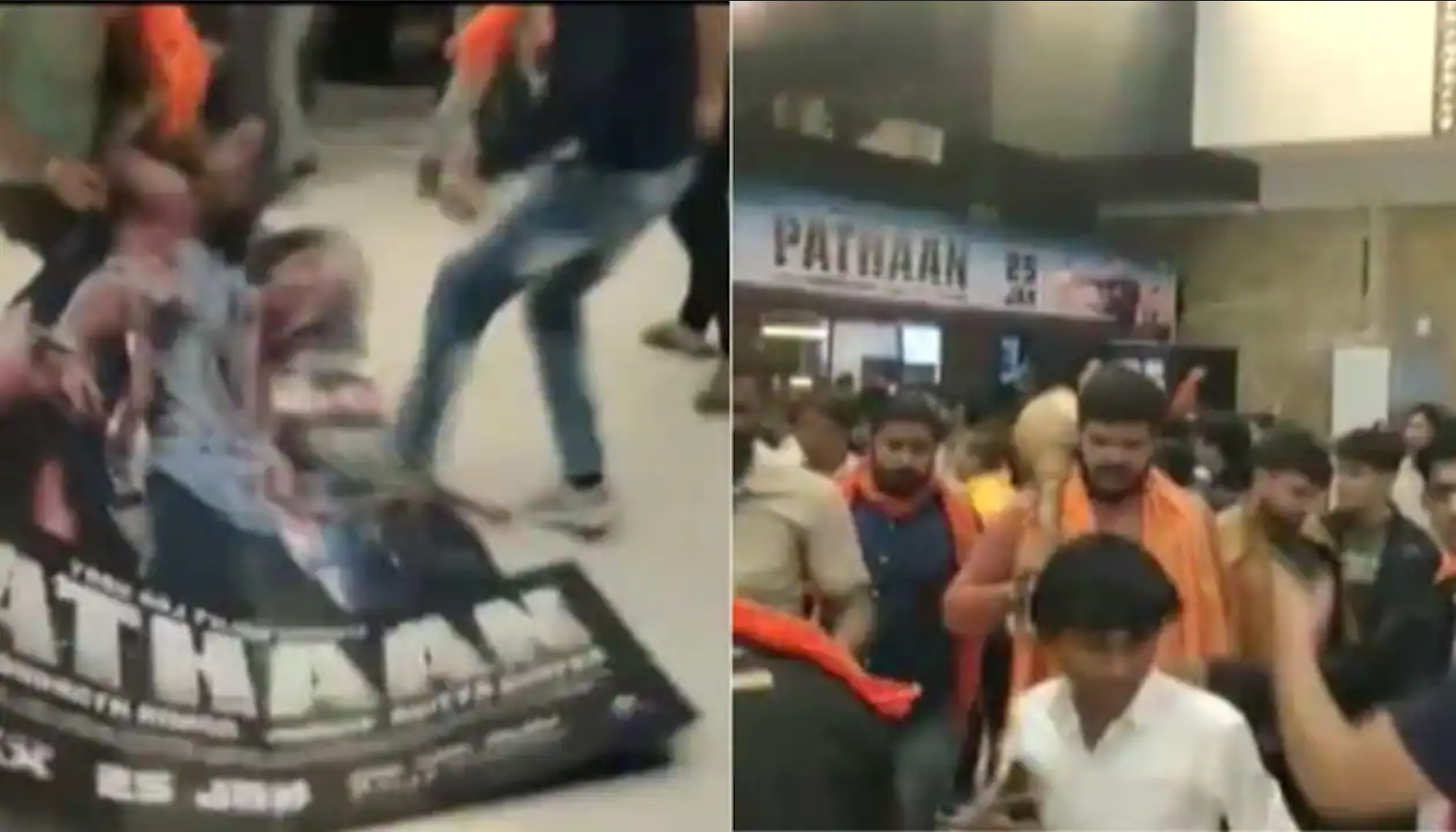 ਸ਼ਾਹਰੁਖ ਖਾਨ ਦੀ ਫਿਲਮ ‘ਪਠਾਨ’ 25 ਜਨਵਰੀ ਨੂੰ ਰਿਲੀਜ਼ ਹੋਣੀ ਹੈ ਪਰ ਪਠਾਨ ਦੇ ਰਿਲੀਜ਼ ਹੋਣ ਤੋਂ ਪਹਿਲਾਂ ਅਹਿਮਦਾਬਾਦ ‘ਚ ਫਿਲਮ ਦੀ ਪ੍ਰਮੋਸ਼ਨ ਨੂੰ ਲੈ ਕੇ ਮਾਲ ‘ਚ ਹੰਗਾਮਾ ਹੋ ਗਿਆ ਹੈ। ਬਜਰੰਗ ਦਲ ਦੇ ਵਰਕਰਾਂ ਨੇ ਮਾਲ ‘ਚ ਆ ਕੇ ਥੀਏਟਰ ‘ਚ ਹੰਗਾਮਾ ਕਰ ਦਿੱਤਾ। ਅਹਿਮਦਾਬਾਦ ਵਿੱਚ ਵਸਤਰਪੁਰ ਝੀਲ ਨੇੜੇ ਅਲਫ਼ਾ ਵਨ ਮਾਲ ਵਿੱਚ ਬਜਰੰਗ ਦਲ ਦੇ ਕਾਰਕੁਨਾਂ ਫਿਲਮ ਪਠਾਨ ਦਾ ਵਿਰੋਧ ਕੀਤਾ। ਉਨ੍ਹਾਂ ਨੇ ਸ਼ਾਹਰੁਖ ਖਾਨ ਅਤੇ ਹੋਰ ਸਟਾਰ ਕਾਸਟ ਦੀਆਂ ਤਸਵੀਰਾਂ ਨੂੰ ਨੁਕਸਾਨ ਪਹੁੰਚਾਇਆ। ਦੂਜੇ ਪਾਸੇ ਜੇਕਰ ਇਹ ਫਿਲਮ ਦੇ ਰਿਲੀਜ਼ ਹੋਣ ‘ਤੇ ਹੋਰ ਤਿੱਖੇ ਅੰਦੋਲਨ ਦੀ ਚਿਤਾਵਨੀ ਦਿੱਤੀ। 12 ਦਸੰਬਰ ਨੂੰ ਪਠਾਨ ਫਿਲਮ ਦਾ ਪਹਿਲਾ ਗੀਤ ‘ਬੇਸ਼ਰਮ ਰੰਗ’ ਰਿਲੀਜ਼ ਹੋਇਆ ਸੀ। ਇਸ ਗੀਤ ‘ਚ ਦੀਪਿਕਾ ਪਾਦੂਕੋਣ ਦੀ ਬਿਕਨੀ ਦੇ ਰੰਗ ਨੂੰ ਲੈ ਕੇ ਵਿਵਾਦ ਖੜ੍ਹਾ ਹੋ ਗਿਆ ਸੀ।