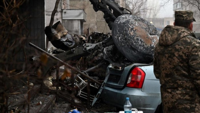 18 ਜਨਵਰੀ ਨੂੰ ਕਿਹਾ ਕਿ ਯੂਕਰੇਨ ਦੀ ਰਾਜਧਾਨੀ ਕੀਵ ਦੇ ਬਾਹਰ ਇੱਕ ਕਿੰਡਰਗਾਰਟਨ ਦੇ ਨੇੜੇ ਇੱਕ ਹੈਲੀਕਾਪਟਰ ਹਾਦਸਾਗ੍ਰਸਤ ਹੋ ਗਿਆ, ਜਿਸ ਕਾਰਨ 16 ਲੋਕ ਮਾਰੇ ਗਏ ਹਨ। ਰਾਸ਼ਟਰੀ ਪੁਲਿਸ ਮੁਖੀ ਨੇ ਕਿਹਾ ਕਿ ਯੂਕਰੇਨ ਦੇ ਗ੍ਰਹਿ ਮੰਤਰੀ ਅਤੇ ਮੰਤਰਾਲੇ ਦੇ ਹੋਰ ਸੀਨੀਅਰ ਅਧਿਕਾਰੀਆਂ ਸਮੇਤ 16 ਲੋਕ ਮਾਰੇ ਗਏ ਹਨ। ਕੀਵ ਖੇਤਰ ਦੇ ਗਵਰਨਰ ਨੇ ਦੱਸਿਆ ਕਿ 18 ਜਨਵਰੀ ਨੂੰ ਨਰਸਰੀ ਸਕੂਲ ਤੇ ਰਿਹਾਇਸ਼ੀ ਇਮਾਰਤ ਦੇ ਨੇੜੇ ਇੱਕ ਹੈਲੀਕਾਪਟਰ ਹਾਦਸਾਗ੍ਰਸਤ ਹੋ ਗਿਆ ਸੀ। ਅਧਿਕਾਰੀਆਂ ਨੇ ਦੱਸਿਆ ਕਿ ਮਰਨ ਵਾਲਿਆਂ ਵਿੱਚ ਦੋ ਬੱਚੇ ਸ਼ਾਮਲ ਹਨ ਅਤੇ ਉਨ੍ਹਾਂ ਵਿੱਚੋਂ 10 ਹਸਪਤਾਲ ਵਿੱਚ ਹਨ।