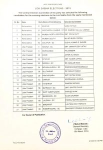 2019 ਲੋਕ ਸਭਾ ਚੋਣਾ ਲਈ ਕਾਂਗਰਸ ਨੇ ਆਪਣੇ ਉਮੀਦਵਾਰਾਂ ਦੀ ਦੂਜੀ ਸੂਚੀ ਜਾਰੀ ਕਰ ਦਿੱਤੀ ਹੈ। ਸੂਚੀ ਅਨੁਸਾਰ ਕਾਂਗਰਸ ਨੇ ਰਾਜ ਬੱਬਰ ਨੂੰ ਯੂਪੀ ਦੇ ਮੋਰਾਦਾਬਾਦ ਤੋਂ ਉਮੀਦਵਾਰ ਘੋਸ਼ਿਤ ਕੀਤਾ ਹੈ ਤੇ ਸਾਬਕਾ ਯੂਨੀਅਨ ਮੰਤਰੀ ਸੁਸ਼ੀਲ ਕੁਮਾਰ ਸ਼ਿੰਦੇ ਨੂੰ ਸੋਲਾਪੁਰ ਅਤੇ ਸ੍ਰੀਪ੍ਰਕਾਸ਼ ਜੈਸਵਾਲ ਨੂੰ ਕਾਨਪੁਰ ਤੋਂ ਉਮੀਦਵਾਰ ਘੋਸ਼ਿਤ ਕੀਤਾ ਹੈ।