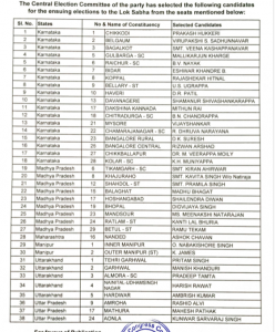 ਕਾਂਗਰਸ ਪਾਰਟੀ ਨੇ ਲੋਕ ਸਭਾ ਚੋਣਾਂ ਲਈ ਸ਼ਨੀਵਾਰ ਦੀ ਦੇਰ ਰਾਤ ਨੂੰ ਆਪਣੇ 38 ਉਮੀਦਵਾਰਾਂ ਦੀ 8ਵੀਂ ਸੂਚੀ ਐਲਾਨ ਦਿੱਤੀ ਹੈ। ਇਸ ਸੂਚੀ ਚ ਕਰਨਾਟਕ, ਮੱਧ ਪ੍ਰਦੇਸ਼, ਮਹਾਰਾਸ਼ਟਰ, ਮਣੀਪੁਰ, ਉਤਰਾਖੰਡ, ਉੱਤਰ ਪ੍ਰਦੇਸ਼ ਦੇ 38 ਉਮੀਦਵਾਰਾਂ ਦੇ ਨਾਂ ਸ਼ਾਮਲ ਹਨ। ਮਲਿੱਕਾਅਰਜੁਨ ਖੜਗੇ ਨੂੰ ਗੁਲਬਰਗ (ਕਰਨਾਟਕ), ਦਿਗਵਿਜੇ ਸਿੰਘ ਨੂੰ ਭੋਪਾਲ (ਮੱਧ ਪ੍ਰਦੇਸ਼) ਅਤੇ ਹਰੀਸ਼ ਰਾਵਤ ਨੂੰ ਨੈਨੀਤਾਲ–ਉਧਮਸਿੰਘ ਨਗਰ (ਉਤਰਾਖੰਡ) ਤੋਂ ਉਮੀਦਵਾਰ ਐਲਾਨਿਆ ਗਿਆ ਹੈ।
