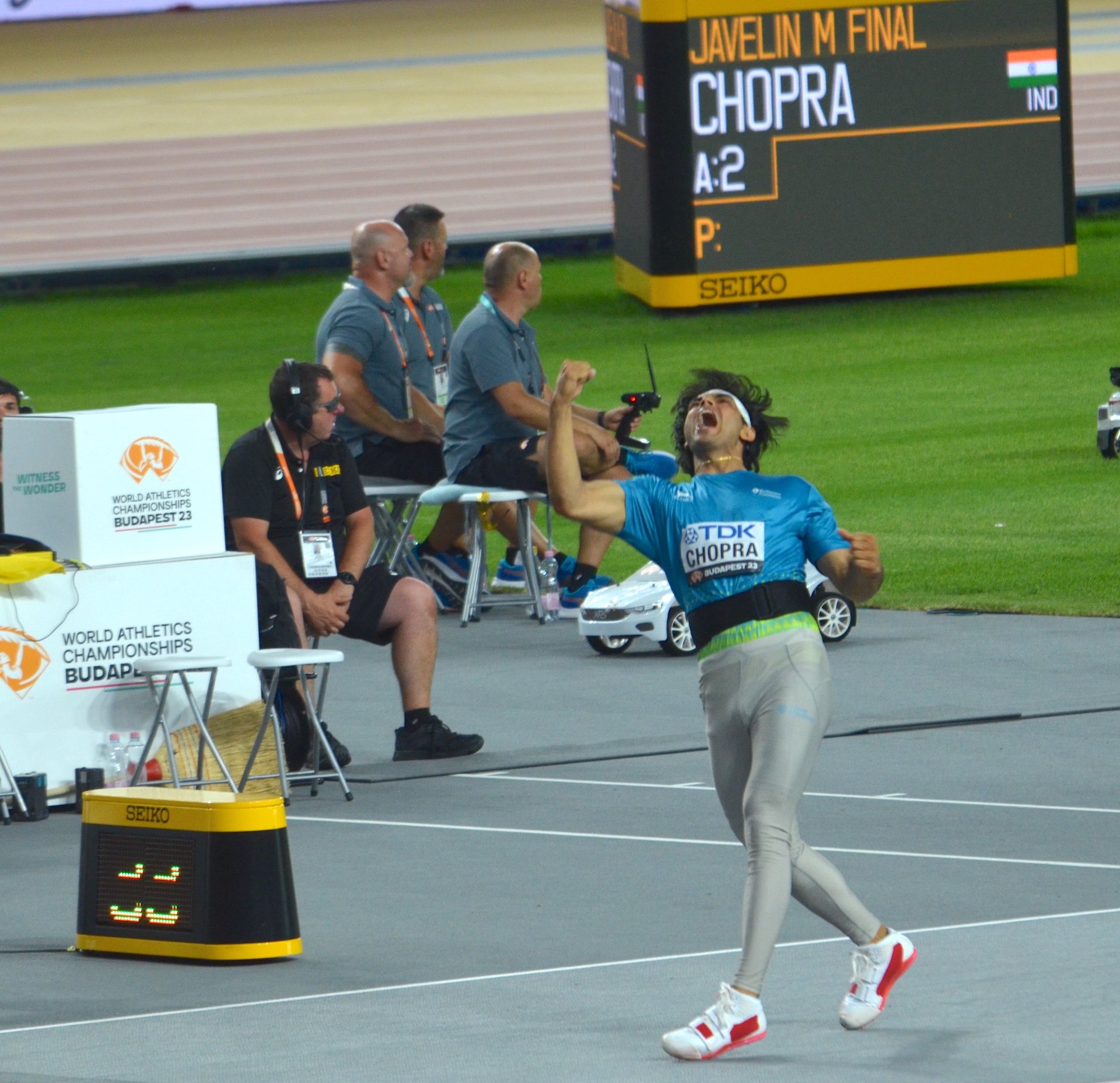 ਭਾਰਤ ਦੇ ਓਲੰਪਿਕ ਮੈਡਲ ਜੇਤੂ ਨੀਰਜ ਚੋਪੜਾ ਨੇ ਸੋਮਵਾਰ ਨੂੰ ਵਰਲਡ ਅਥਲੈਟਿਕਸ ਚੈਂਪੀਅਨਸ਼ਿਪ ਵਿਚ ਪਾਕਿਸਤਾਨ ਦੇ ਅਰਸ਼ਦ ਨਦੀਮ ਨੂੰ ਇਕ ਮੀਟਰ ਦੇ ਫਰਕ ਨਾਲ ਜੈਵਲਿਨ ਥਰੋਅ ਵਿਚ ਹਰਾ ਕੇ ਗੋਲਡ ਮੈਡਲ ਜਿੱਤਿਆ।