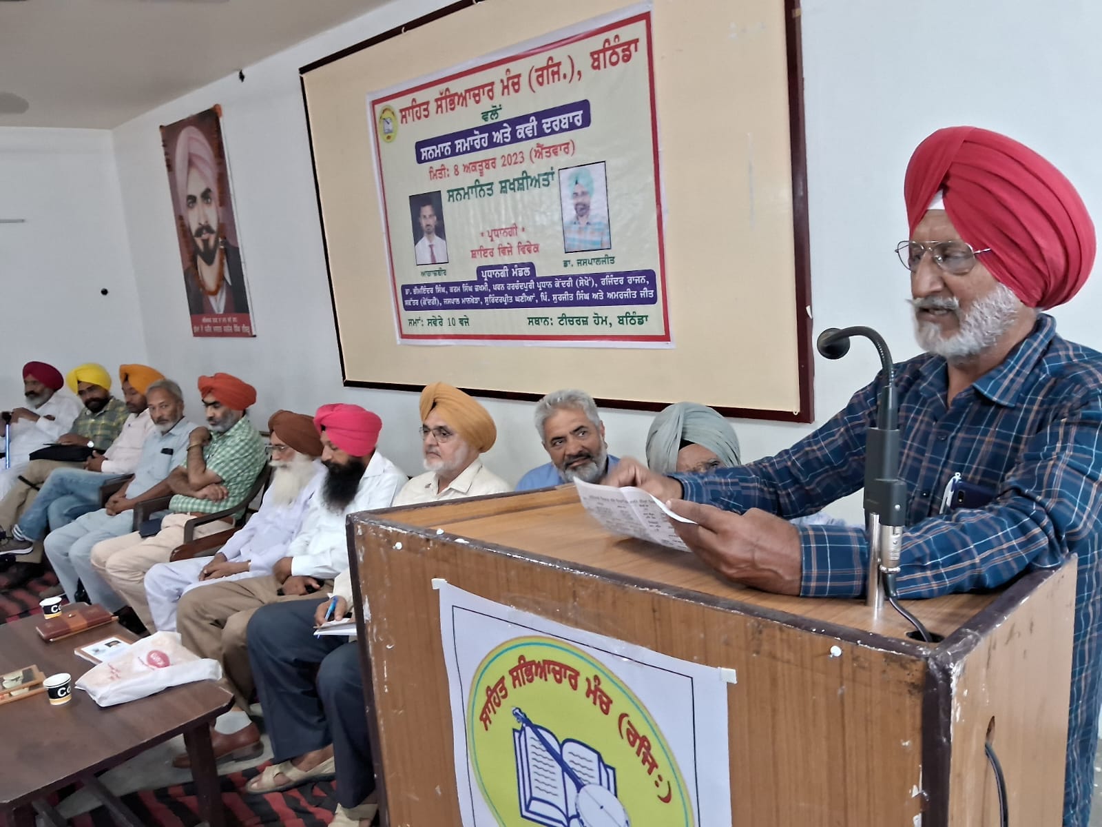 ਜਸਪਾਲ ਮਾਨਖੇੜਾ ਨੇ ਸੰਬੋਧਨ ਕਰਦਿਆਂ ਸੱਚ ਦੀ ਆਵਾਜ਼ ਬੰਦ ਕਰਨ ਲਈ ਸਾਹਿਤਕਾਰਾਂ ਪੱਤਰਕਾਰਾਂ ਨੂੰ ਪਰੇਸਾਨ ਕਰਨ ਦੀ ਨਿੰਦਾ ਕਰਦਿਆਂ ਧੱਕੇਸ਼ਾਹੀ ਵਿਰੁੱਧ ਇਕੱਠੇ ਹੋਣ ਦੀ ਅਪੀਲ ਕੀਤੀ।
