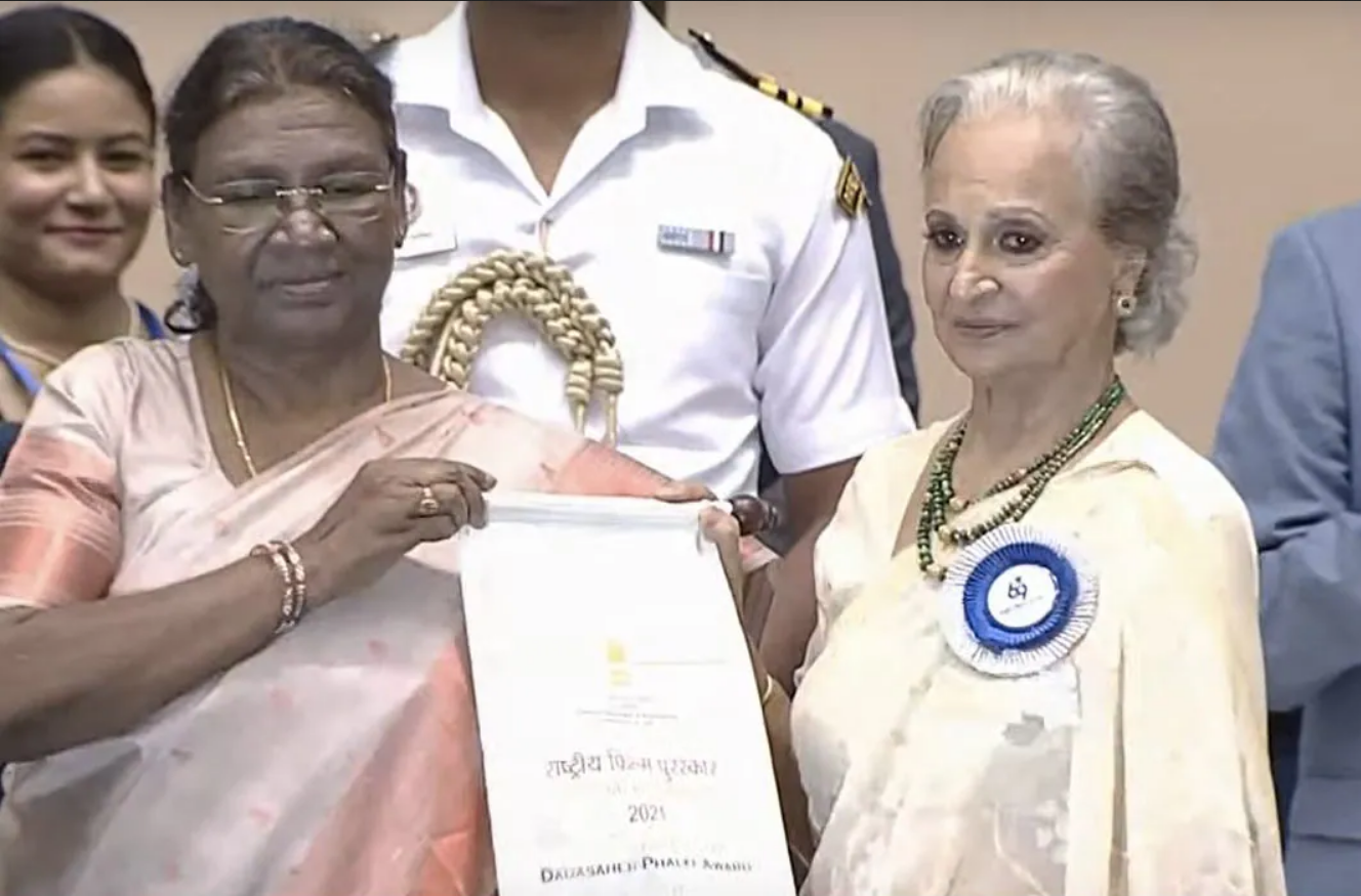 ਭਾਰਤੀ ਸਿਨੇਮੇ ਦਾ ਸਭ ਤੋਂ ਵੱਡਾ ਸਨਮਾਨ ਦਾਦਾ ਸਾਹੇਬ ਫਾਲਕੇ ਅਵਾਰਡਅਦਾਕਾਰਾ ਵਹੀਦਾ ਰਹਿਮਾਨ ਨੂੰ ਦਿਾੱਤ ਗਿਆ ਹੈ। ਇਸ ਤਰ੍ਹਾਂ ਉਹ ਅੱਠਵੀਂ ਮਹਿਲਾ ਕਲਾਕਾਰ ਬਣ ਗਈ, ਜੋ ਭਾਰਤੀ ਸਿਨੇਮੇ ਦੇ ਖੇਤਰ ਵਿੱਚ ਸਭ ਤੋਂ ਵੱਡਾ ਸਨਮਾਨ ਹੈ। ਉਨ੍ਹਾਂ ਨੇ ਇਹ ਸਨਮਾਨ ਫਿਲਮ ਉਦਯੋਗ ਅਤੇ ਇਸਦੇ ਵੱਖ-ਵੱਖ ਵਿਭਾਗਾਂ ਨੂੰ ਸਮਰਪਿਤ ਕੀਤਾ। ਰਾਸ਼ਟਰਪਤੀ ਦ੍ਰੋਪਦੀ ਮੁਰਮੂ ਨੇ ਇੱਥੇ ਵਿਗਿਆਨ ਭਵਨ ਵਿੱਚ 69ਵੇਂ ਰਾਸ਼ਟਰੀ ਫਿਲਮ ਪੁਰਸਕਾਰ ਸਮਾਰੋਹ ਦੌਰਾਨ ਵਹੀਦਾ ਰਹਿਮਾਨ (85) ਨੂੰ ਇਹ ਪੁਰਸਕਾਰ ਪ੍ਰਦਾਨ ਕੀਤਾ।