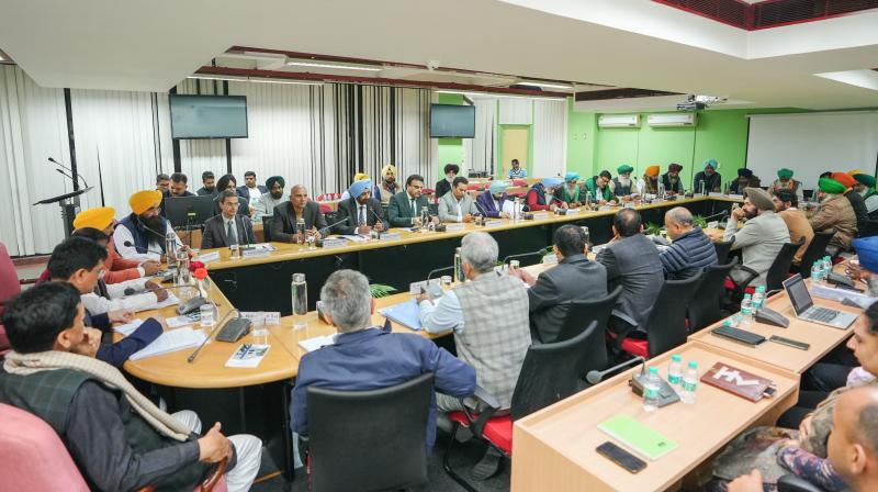 ਮੀਟਿੰਗ ਮਗਰੋਂ ਮੰਤਰੀ ਪਿਊਸ਼ ਗੋਇਲ ਨੇ ਕਿਹਾ- ਕਿਸਾਨ ਆਗੂਆਂ ਨੇ ਪੰਜਾਬ ‘ਚ ਪਾਣੀ ਦੇ ਡਿੱਗਦੇ ਪੱਧਰ ਦਾ ਮੁੱਦਾ ਚੁੱਕਿਆ। ਇਸ ‘ਤੇ ਅਸੀਂ ਤਜਵੀਜ਼ ਰੱਖੀ ਕਿ ਜੇਕਰ ਅਰਹਰ, ਤੁਅਰ, ਉੜਦ ਵਰਗੇ ਅਨਾਜ ਘੱਟੋ-ਘੱਟ ਸਮਰਥਨ ਮੁੱਲ ‘ਤੇ ਖਰੀਦੇ ਜਾਣ ਤਾਂ ਦੇਸ਼ ‘ਚ ਅਨਾਜ ਦੀ ਦਰਾਮਦ ‘ਚ ਕਮੀ ਆਵੇਗੀ ਅਤੇ ਪਾਣੀ ਦਾ ਪੱਧਰ ਵੀ ਠੀਕ ਹੋ ਜਾਵੇਗਾ।ਗੋਇਲ ਨੇ ਕਿਹਾ- ਕਿਸਾਨਾਂ ਨੇ ਘੱਟੋ-ਘੱਟ ਸਮਰਥਨ ਮੁੱਲ ‘ਤੇ ਮੱਕੀ ਅਤੇ ਕਪਾਹ ਖਰੀਦਣ ਦੀ ਵੀ ਮੰਗ ਕੀਤੀ ਹੈ। ਇਸ ‘ਤੇ ਵਿਸਤ੍ਰਿਤ ਵਿਚਾਰ ਵਟਾਂਦਰੇ ਤੋਂ ਬਾਅਦ, ਅਸੀਂ ਫੈਸਲਾ ਕੀਤਾ ਹੈ ਕਿ NCCF ਅਤੇ NAFED ਘੱਟੋ-ਘੱਟ ਸਮਰਥਨ ਮੁੱਲ ‘ਤੇ ਕਿਸਾਨਾਂ ਦੀਆਂ ਫਸਲਾਂ ਖਰੀਦਣਗੇ। ਇਹ ਇਕਰਾਰਨਾਮਾ 5 ਸਾਲਾਂ ਲਈ ਚੱਲੇਗਾ। ਇਸ ਦੇ ਲਈ ਇਕ ਪੋਰਟਲ ਵੀ ਬਣਾਇਆ ਜਾਵੇਗਾ। ਇਸ ਨਾਲ ਕਿਸਾਨਾਂ ਦੀ ਆਮਦਨ ਵੀ ਵਧੇਗੀ।ਇਸ ਤੋਂ ਇਲਾਵਾ ਗੋਇਲ ਨੇ ਕਿਹਾ ਕਿ ਕਾਟਨ ਕਾਰਪੋਰੇਸ਼ਨ ਆਫ ਇੰਡੀਆ ਕਪਾਹ ਦੀ ਕਾਸ਼ਤ ਕਰਨ ਵਾਲੇ ਕਿਸਾਨਾਂ ਨਾਲ 5 ਸਾਲਾਂ ਦਾ ਸਮਝੌਤਾ ਵੀ ਕਰੇਗੀ। ਇਹ ਸੰਸਥਾ ਘੱਟੋ ਘੱਟ ਸਮਰਥਨ ਮੁੱਲ ‘ਤੇ ਕਪਾਹ ਦੀ ਖਰੀਦ ਕਰੇਗੀ। ਕਿਸਾਨਾਂ ਨੇ ਕਿਹਾ ਕਿ ਉਹ ਸਾਡੀ ਤਜਵੀਜ਼ ਨੂੰ ਹੋਰ ਕਿਸਾਨਾਂ ਨਾਲ ਵਿਚਾਰਨਗੇ। ਅਸੀਂ ਦਿੱਲੀ ਜਾ ਕੇ NCCF ਅਤੇ NAFED ਨਾਲ ਵੀ ਇਸ ਬਾਰੇ ਚਰਚਾ ਕਰਾਂਗੇ।