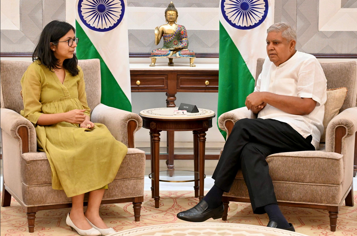 ਆਪ ਦੀ ਰਾਜ ਸਭਾ ਮੈਂਬਰ ਸਵਾਤੀ ਮਾਲੀਵਾਲ ਨੇ ਸਨਿਚਰਵਾਰ ਨੂੰ ਉਪ ਰਾਸ਼ਟਰਪਤੀ ਅਤੇ ਉੱਚ ਸਦਨ ਦੇ ਚੇਅਰਮੈਨ ਜਗਦੀਪ ਧਨਖੜ ਨਾਲ ਉਨ੍ਹਾਂ ਦੀ ਰਿਹਾਇਸ਼ ’ਤੇ ਮੁਲਾਕਾਤ ਕੀਤੀ। ਉਪ ਰਾਸ਼ਟਰਪਤੀ ਦੇ ਅਧਿਕਾਰਤ ‘ਐਕਸ’ ’ਤੇ ਇਕ ਪੋਸਟ ਵਿਚ ਕਿਹਾ ਗਿਆ ਹੈ, ‘‘ਮਾਣਯੋਗ ਸੰਸਦ ਮੈਂਬਰ (ਰਾਜ ਸਭਾ) ਸ਼੍ਰੀਮਤੀ ਸਵਾਤੀ ਮਾਲੀਵਾਲ ਜੀ ਨੇ ਅੱਜ ਉਪ ਰਾਸ਼ਟਰਪਤੀ ਦੀ ਰਿਹਾਇਸ਼ ’ਤੇ ਮਾਣਯੋਗ ਉਪ ਰਾਸ਼ਟਰਪਤੀ ਅਤੇ ਰਾਜ ਸਭਾ ਦੇ ਚੇਅਰਮੈਨ ਜਗਦੀਪ ਧਨਖੜ ਨਾਲ ਮੁਲਾਕਾਤ ਕੀਤੀ।’’ ਮਾਲੀਵਾਲ ਨੇ ਹਾਲ ਹੀ ’ਚ ਦਿੱਲੀ ਦੇ ਮੁੱਖ ਮੰਤਰੀ ਅਰਵਿੰਦ ਕੇਜਰੀਵਾਲ ਦੇ ਨਿੱਜੀ ਸਕੱਤਰ ਵਿਭਵ ਕੁਮਾਰ ਵਿਰੁਧ ਉਨ੍ਹਾਂ ’ਤੇ ਹਮਲਾ ਕਰਨ ਦਾ ਦੋਸ਼ ਲਾਇਆ ਸੀ।