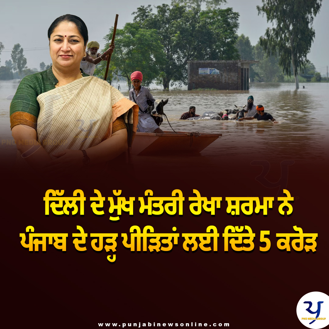 ਦਿੱਲੀ ਦੀ ਮੁੱਖ ਮੰਤਰੀ ਰੇਖਾ ਗੁਪਤਾ ਨੇ ਅੱਜ ਪੰਜਾਬ ਨੂੰ ਪੰਜ ਕਰੋੜ ਰੁਪਏ ਦੀ ਵਿੱਤੀ ਸਹਾਇਤਾ ਦੇਣ ਦਾ ਐਲਾਨ ਕਰਦੇ ਹੋਏ ਕਿਹਾ ਕਿ ਉਨ੍ਹਾਂ ਦੀ ਸਰਕਾਰ ਹੜ੍ਹ ਪ੍ਰਭਾਵਿਤ ਸੂਬੇ ਨੂੰ ਲੋੜੀਂਦੀ ਕੋਈ ਵੀ ਹੋਰ ਸਹਾਇਤਾ ਪ੍ਰਦਾਨ ਕਰਨ ਲਈ ਤਿਆਰ ਹੈ।ਗੁਪਤਾ ਨੇ ਕਿਹਾ ਕਿ ਉਨ੍ਹਾਂ ਨੇ ਆਪਣੇ ਪੰਜਾਬ ਦੇ ਹਮਰੁਤਬਾ ਭਗਵੰਤ ਮਾਨ ਨਾਲ ਗੱਲ ਕੀਤੀ ਹੈ ਅਤੇ ਉਨ੍ਹਾਂ ਨੂੰ ਦੱਸਿਆ ਕਿ ਦਿੱਲੀ, ਸੂਬੇ ਦੇ ਨਾਲ ਮੋਢੇ ਨਾਲ ਮੋਢਾ ਜੋੜ ਕੇ ਖੜ੍ਹੀ ਹੈ ਅਤੇ ਹੜ੍ਹਾਂ ਕਾਰਨ ਪੈਦਾ ਹੋਈ ਸਥਿਤੀ ਨਾਲ ਨਜਿੱਠਣ ਲਈ ਲੋੜੀਂਦੀ ਕਿਸੇ ਵੀ ਮਦਦ ਲਈ ਤਿਆਰ ਹੈ।ਮੁੱਖ ਮੰਤਰੀ ਨੇ ਕਿਹਾ, ‘‘ਅਸੀਂ ਦਿੱਲੀ ਸਰਕਾਰ ਵੱਲੋਂ ਪੰਜਾਬ ਮੁੱਖ ਮੰਤਰੀ ਰਾਹਤ ਫੰਡ ਲਈ 5 ਕਰੋੜ ਰੁਪਏ ਦੀ ਸਹਾਇਤਾ ਦਾ ਐਲਾਨ ਕਰ ਰਹੇ ਹਾਂ ਅਤੇ ਕਾਮਨਾ ਕਰਦੇ ਹਾਂ ਕਿ ਸੂਬਾ ਇਸ ਨਾਜ਼ੁਕ ਸਥਿਤੀ ਤੋਂ ਉੱਭਰ ਜਾਵੇ ਅਤੇ ਇਸ ਦੇ ਲੋਕ ਆਪਣਾ ਆਮ ਜੀਵਨ ਮੁੜ ਸ਼ੁਰੂ ਕਰ ਸਕਣ।’’