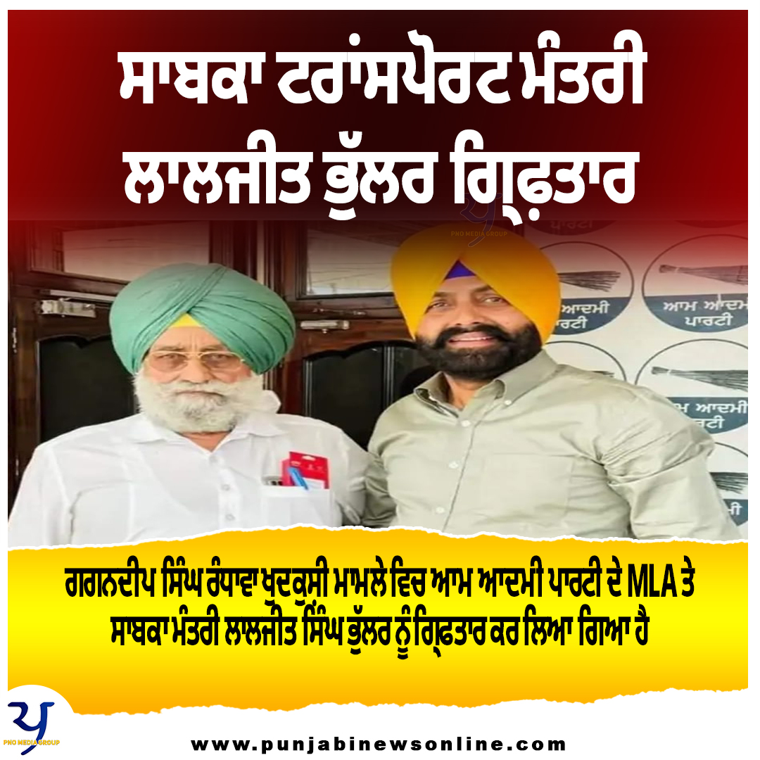 ਗਗਨਦੀਪ ਸਿੰਘ ਰੰਧਾਵਾ ਖੁਦਕੁਸ਼ੀ ਮਾਮਲੇ ਵਿਚ ਲੜੀਂਦੇ ਆਮ ਆਦਮੀ ਪਾਰਟੀ ਦੇ ਵਿਧਾਇਕ ਤੇ ਸਾਬਕਾ ਮੰਤਰੀ ਲਾਲਜੀਤ ਸਿੰਘ ਭੁੱਲਰ ਨੂੰ ਗ੍ਰਿਫਤਾਰ ਕਰ ਲਿਆ ਗਿਆ ਹੈ। ਉਸ ਨੂੰ ਲੁਧਿਆਣਾ ਦੇ ਮੰਡੀ ਗੋਬਿੰਦਗੜ੍ਹ ਖੇਤਰ ਤੋਂ ਪੁਲਿਸ ਨੇ ਕਾਬੂ ਕੀਤਾ ਹੈ।
