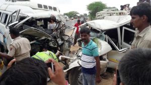 ਜੋਧਪੁਰ-ਜੈਸਲਮੇਰ ਰੋਡ ‘ਤੇ ਆਗੋਲਾਈ ਕੋਲ ਢਾਢਣੀਆ ਪਿੰਡ ਨੇੜੇ ਇਕ ਮਿੰਨੀ ਬੱਸ ਤੇ ਕੈਂਪਰ ਗੱਡੀ ਦੀ ਆਹਮੋ-ਸਾਹਮਣੇ ਦੀ ਟੱਕਰ ‘ਚ 16 ਲੋਕਾਂ ਦੀ ਮੌਤ ਹੋ ਗਈ। ਹਾਦਸੇ ‘ਤੇ ਮੁੱਖ ਮੰਤਰੀ ਅਸ਼ੋਕ ਗਹਿਲੋਤ ਨੇ ਵੀ ਦੁੱਖ ਪ੍ਰਗਟਾਇਆ ਹੈ। ਬਾਲੇਸਰ ਰਾਤਾ ਭਾਕਰ ਨਿਵਾਸੀ ਸਰਵਨ ਸਿੰਘ ਪੁੱਤਰ ਗਿਰਧਰ ਸਿੰਘ ਦਾ ਪਰਿਵਾਰ ਝੰਵਰ ਸਥਿਤ ਆਪਣੇ ਰਿਸ਼ਤੇਦਾਰਾਂ ਨੂੰ ਮਿਲਣ ਗਿਆ ਸੀ। ਵਾਪਸ ਆਉਂਦਿਆਂ ਢਾਢਣੀਆ ਪਿੰਡ ਵੱਲੋਂ ਆ ਰਹੀ ਸਵਾਰੀਆਂ ਨਾਲ ਭਰੀ ਮਿੰਨੀ ਬੱਸ ਦਾ ਟਾਇਰ ਫਟਣ ਕਰ ਕੇ ਬਲੈਰੋ ਕੈਂਪਰ ਨਾਲ ਟਕਰਾ ਗਈ। ਟੱਕਰ ਇੰਨੀ ਭਿਆਨਕ ਸੀ ਕਿ ਦੋਵਾਂ ਵਾਹਨਾਂ ‘ਚ ਸਵਾਰ ਲੋਕ ਸੜਕ ‘ਤੇ ਡਿੱਗ ਗਏ। ਮੌਕੇ ‘ਤੇ ਪਹੁੰਚੇ ਪਿੰਡ ਵਾਸੀਆਂ ਨੇ ਭਿਆਨਕ ਹਾਦਸੇ ‘ਚ ਜ਼ਖ਼ਮੀਆਂ ਤੇ ਮ੍ਰਿਤਕਾਂ ਨੂੰ ਬਾਲਸੇਰ ਸੀਐੱਚਸੀ ਪਹੁੰਚਾਇਆ। ਜਿੱਥੇ ਡਾਕਟਰਾਂ ਨੇ 16 ਲੋਕਾਂ ਨੂੰ ਮ੍ਰਿਤਕ ਐਲਾਨ ਦਿੱਤਾ।
